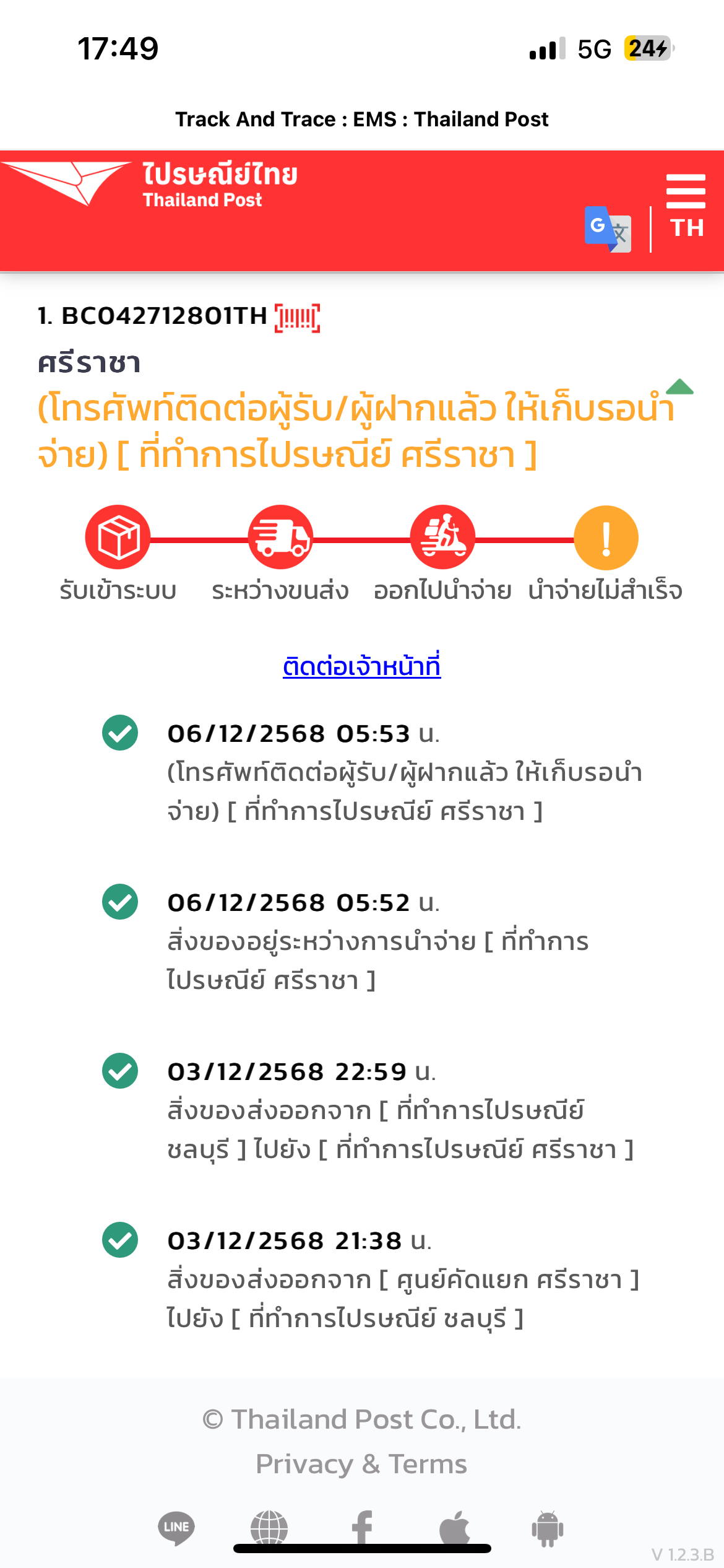 เช็คเลขพัสดุแล้วขึ้นสถานะว่า นำจ่ายไม่สำเร็จ ต้องทำไงบ้างคะ ส่งems ค่ะ