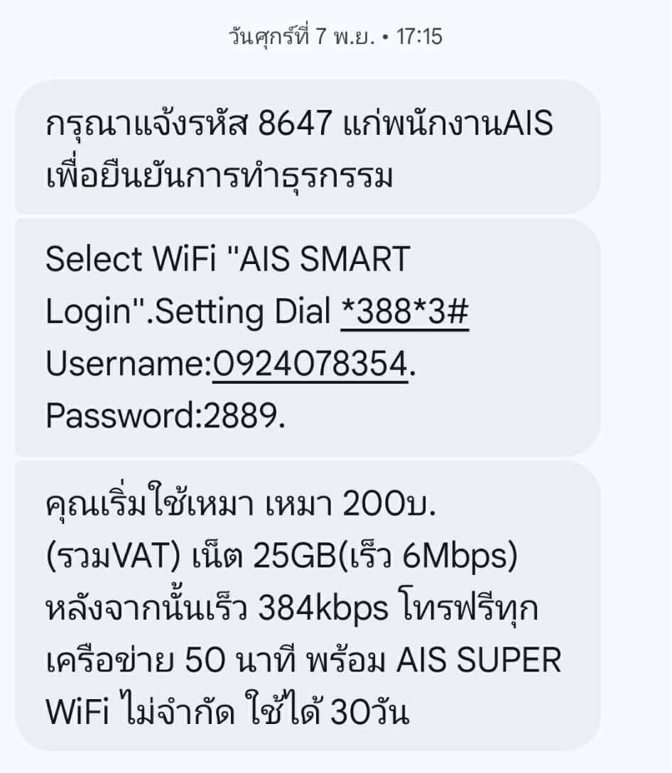 สมัครเน็ต Ais รายเดือนไปเมื่อเดือนที่แล้ววันที่7พฤศจิกายน2568 แล้วเมื่อวานวันที่7ธันวาคม2568 เน็ตหมดแล้วได้เติมเงินแต่ระบบมันไม่หักเน็ตก็เล่นไม่ได้ ทำยบ้างเเพ็จเพ็จจกเก็จนี้เพิ่งใช้แค่1เดือน