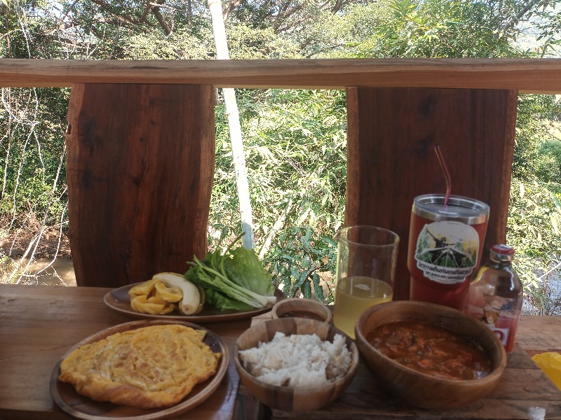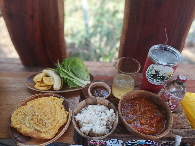 เลือกจุดแรก เพราะไม่ต้องขนของ และมีพื้นที่เยอะ ขนของลง กางเต็นท์ จัดบ้าน แล้วทำมื้อเช้า+เที่ยงต่อ เสร็จก่อนบ่าย 2 โมง นั่งกินด้วยความอร่อย แกงส้มกุ้ง 20 บาทจากตลาดสดคลองเตย อร่อย+ถูกมาก ออ เพิ่งมารู้ว่า เปิดกะเหมนเต็มที่ตอนนี้ ขอคาราวะดวงวิญญาณของทหารที่สูญเสียด้วยครับ และขอวิงวอนให้เอาให้จบเสียทีครับ ไม่งั้นจะมาคอยวอแวกับเราอีก สงสารคนชายแดนครับ