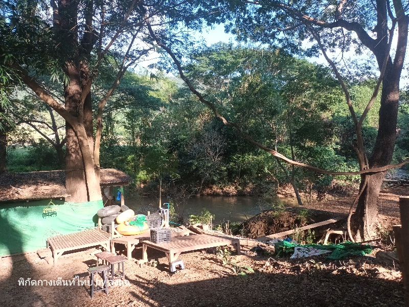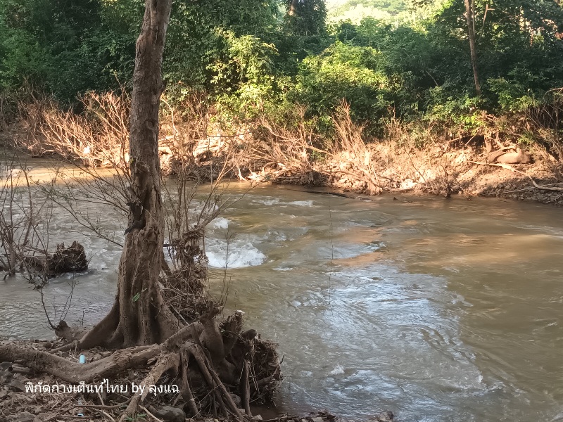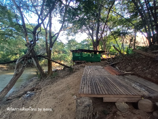 เดินดูบรรยากาศของแคมป์ เป็นทำเลติดริมน้ำ น้ำช่วงนี้ค่อนข้างไหลแรง แต่ขุ่นน้อยลง ให้เวลาอีกไม่นาน น้ำลดลง ไม่ไหลแรงมากนัก ลงเล่นน้ำได้สนุกแน่ ส่วนการกางเต็นท์ คงต้องมีการปรับระดับเพื่อวางแคร่ไม้ได้ดีขึ้น และรีบทำสะพานไม้ข้ามไปลานดิน ออ อาจต้องมีรถเข็นอีกซักคันเพื่อขนของจากรถไปลานดินที่ไกลซัก 20 ม.ได้ ออ มีร้านกาแฟ เครื่องดื่ม อาหารให้บริการด้วยนะครับ และเป็นท่าน้ำไว้เล่นน้ำอีกด้วย
