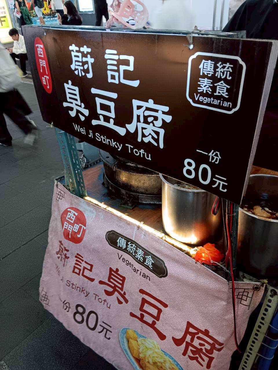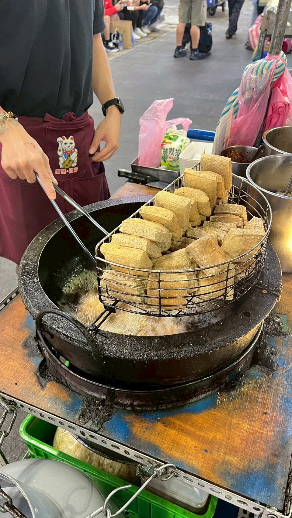 ระหว่างที่เรายืนซื้อโมจิอยู่นั้น กลิ่นเหม็นประหลาดก็โชยมาเตะจมูก ซึ่งยังไม่ต้องบอกหรือยังไม่เคยได้กลิ่น เราก็เดาได้เลยว่ามันคือเต้าหู้เหม็นแน่นอน เต้าหู้เหม็น หรือ Stinky Tofu เป็นของกินอีกหนึ่งอย่างที่เราอยากลองกินมาก เราจึงจัดมาหนึ่งเซ็ต วิธีการกินคือ เขาจะนำเต้าหู้ไปทอด เมื่อสุกได้ที่จะนำมาตัดเป็นชิ้น ๆ ราดน้ำราดใส่พริก ใส่กระเทียม และโปะหน้าด้วยกะหล่ำฝอยดอง พอได้เอาเข้าปากคำแรก คือรักเลย กลิ่นเหม็นเมื่อกี้หายไปหมดแล้ว น้ำจิ้มพริกค่อนข้างเผ็ดๆ ผสมกับความเค็มหวานที่พอดีมาก ตัดกับผักดองเปรี้ยว ๆ ที่เข้ากันสุด ๆ เป็นอาหารที่ไม่คิดว่าจะชอบขนาดนี้