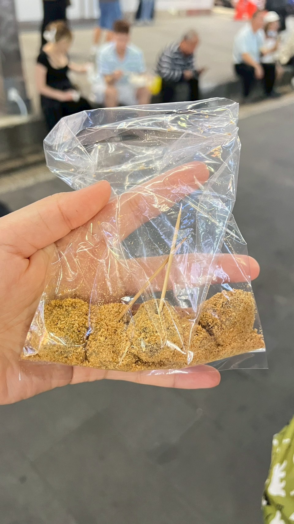 หลังจากมูเตลูกันเรียบร้อย จึงจับรถ MRT กลับไปสถานี Ximen ไปเดินเล่นย่านซีเหมินติง ย่านนี้ถ้าเปรียบกับไทยก็เหมือนโซนสยามสแควร์ แต่เป็นสยามสแควร์ที่ดู local กว่า มีร้านรวงขายของเต็มไปหมด ทั้งเสื้อผ้า ของที่ระลึก ตู้คีบตุ๊กตา และรถเข็นสตรีทฟู้ด หรืออย่างวันนี้ ก็เห็นวัยรุ่นมาเต้น cover อยู่หลายกลุ่มเลย เป็นพื้นที่ของวัยรุ่น ทีเราในวัย 30 กลางๆเห็นแล้วก็สนุกดี วันนี้อากาศเย็นสบาย ประมาณ 26 - 27 องศา ใส่เสื้อแขนสั้นเดินได้ เราแวะซื้อขนมโมจิคลุกถั่วผง ๆ รสชาติหวานบางๆ ตัดกับถั่วมัน ๆ อร่อยดี