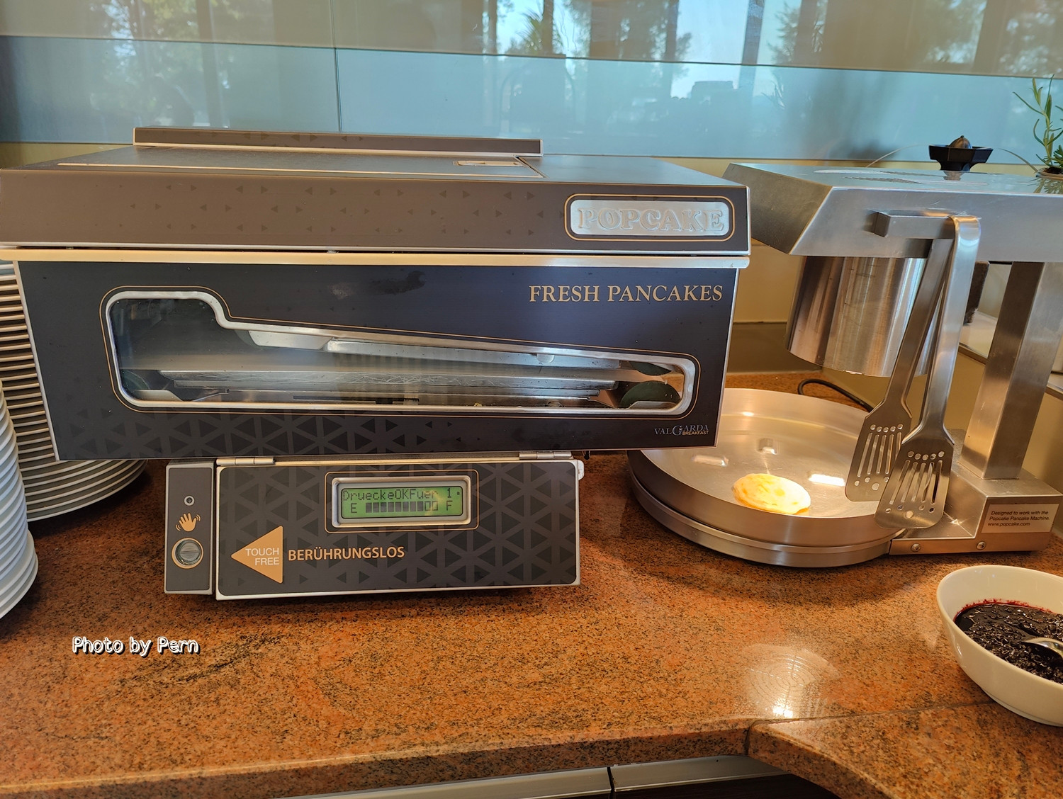 มาดูในส่วนของอาหารเช้าค่ะ ที่ชอบที่สุดคือเครื่องทำมินิแพนเค้กอัตโนมัติค่ะ แค่เอามือไปโบกที่จุด เครื่องก็จะเริ่มทำงานค่ะ