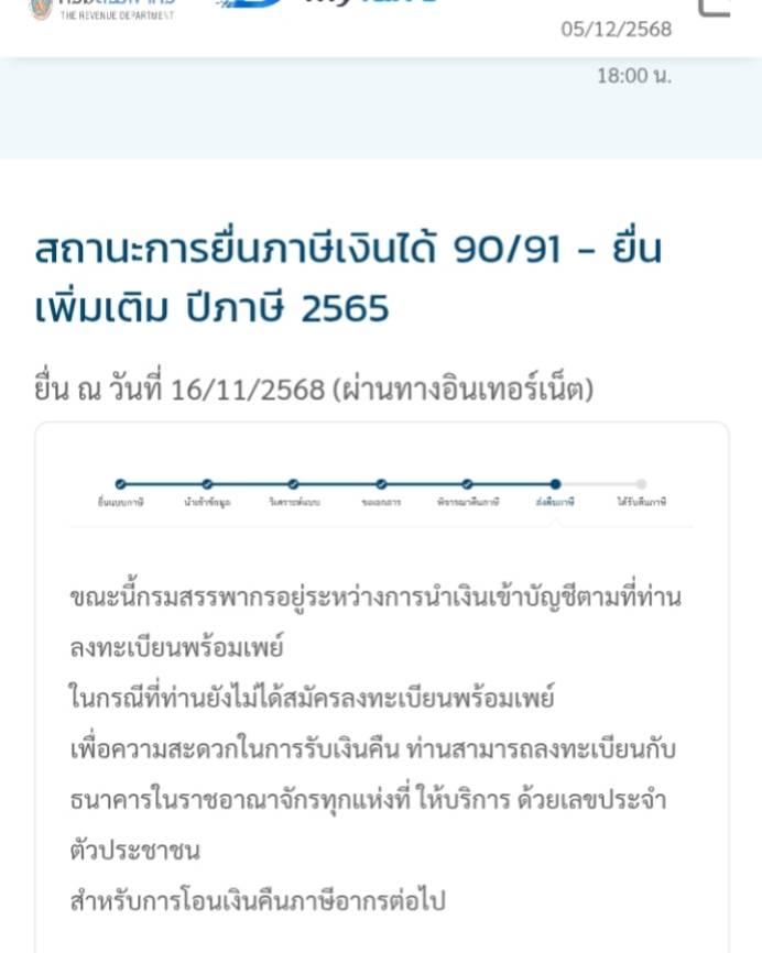 พอเราเข้าไปเช็คสถานะของการดำเนินการ มันขึ้นว่า ส่งคืนภาษี เมื่อวันที่16/11/68 เลยอยากจะถามว่า ประมาณกี่วันถึงจะได้คืนคะ