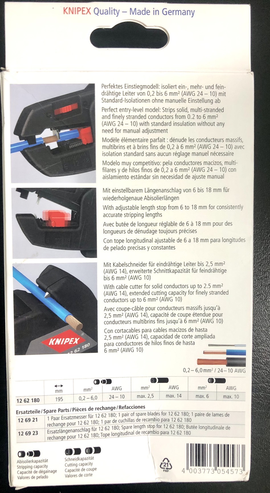 [CR] เเกะกล่อง คีมปอกสายไฟ KNIPEX 12 62 180