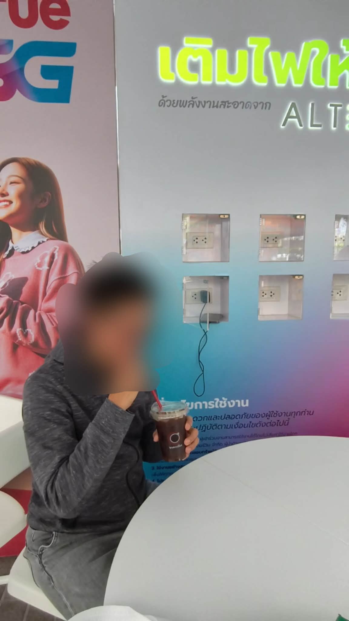 จุดนี้เผื่อใครแบตใกล้จะหมด มาชาร์จรอก่อนได้เลยจากบูธ true เราเองก็จิบกาแฟรอไป 1 พร้อมเติมแบตไปด้วย
