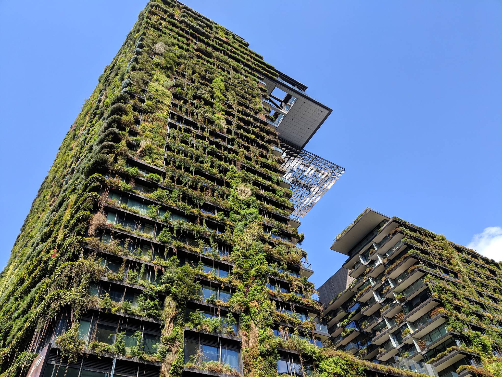 อาคารนี้โดดเด่นด้วยการใช้ ระเบียงขนาดใหญ่ เพื่อปลูก ต้นไม้ 800 ต้น, ไม้พุ่ม 4,500 ต้น และพืชคลุมดิน 15,000 ต้น ซึ่งเทียบเท่ากับพื้นที่ป่ากว่า 20,000 ตารางเมตรที่ถูกย้ายมาปลูกในแนวตั้ง
