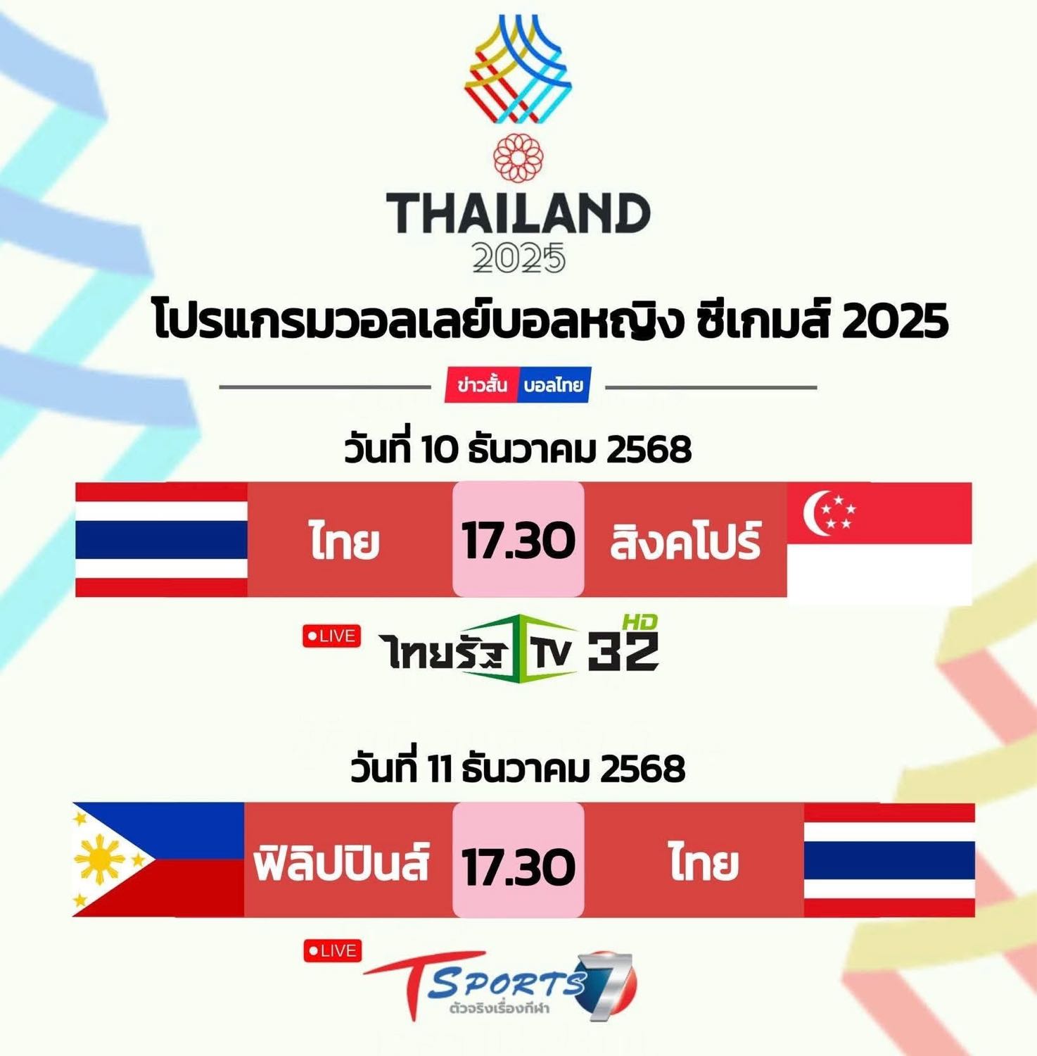 ❁❁ โปรแกรมถ่ายทอดสดวอลเลย์บอลซีเกมส์ | NBTยิงสดทุกนัดของทีมไทย 🇹🇭