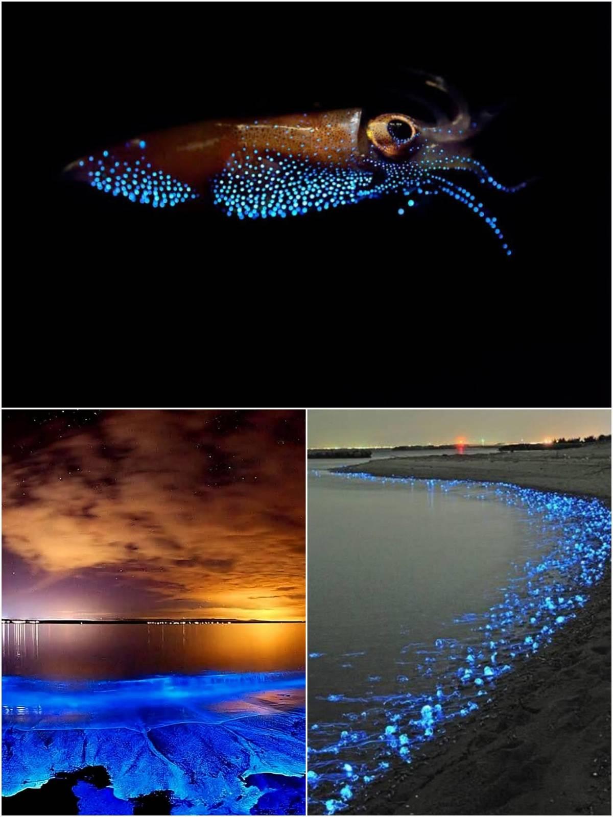 ✨️หมึกโฮตารุมีอวัยวะที่เรียกว่า Photophores ทั่วทั้งตัวที่สามารถปล่อยแสงสีน้ำเงินอมขาวออกมาได้เหมือนหิ่งห้อย เมื่อหมึกตัวเมียหลายพันตัวขึ้นมาวางไข่ใกล้ผิวน้ำหรือถูกกระตุ้นด้วยคลื่นหรือแหจับปลา แสงสีฟ้า-ขาวที่ระยิบระยับจะส่องสว่างขึ้นมาในความมืดมิดของท้องทะเล คล้ายกับดวงดาวในกาแล็กซี่ ทำให้ถูกขนานนามว่าเป็น "อัญมณีแห่งท้องทะเล"