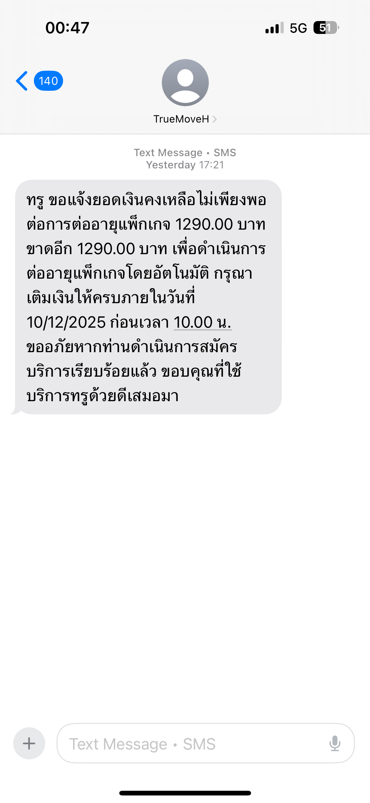 คือเน็ตเราจะหมดเเล้วก้มีข้อความเตือนมาว่าเงินขาดอีก1290บาทคือเเจ้งเตือนมาตอนวันที่9 เเล้วเราก้เติมเงินเข้าไป1300 ในวันที่10ประมาณเที่ยงคืนกว่าๆ