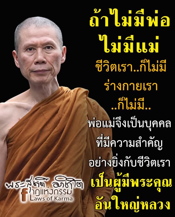 ถ้าไม่มีพ่อไม่มีแม่ชีวิตเราก็ไม่มีร่างกายเราก็ไม่มี พ่อแม่จึงมีความสําคัญยิ่งกับชีวิตเราเป็นผู้มีพระคุณอันใหญ่หลวง