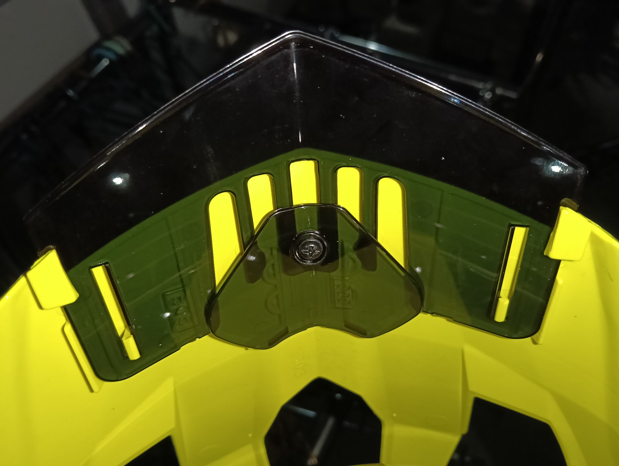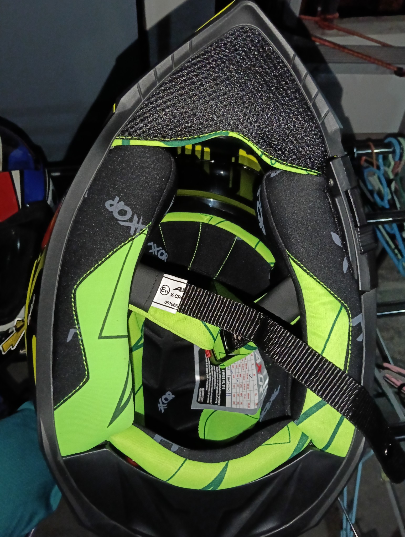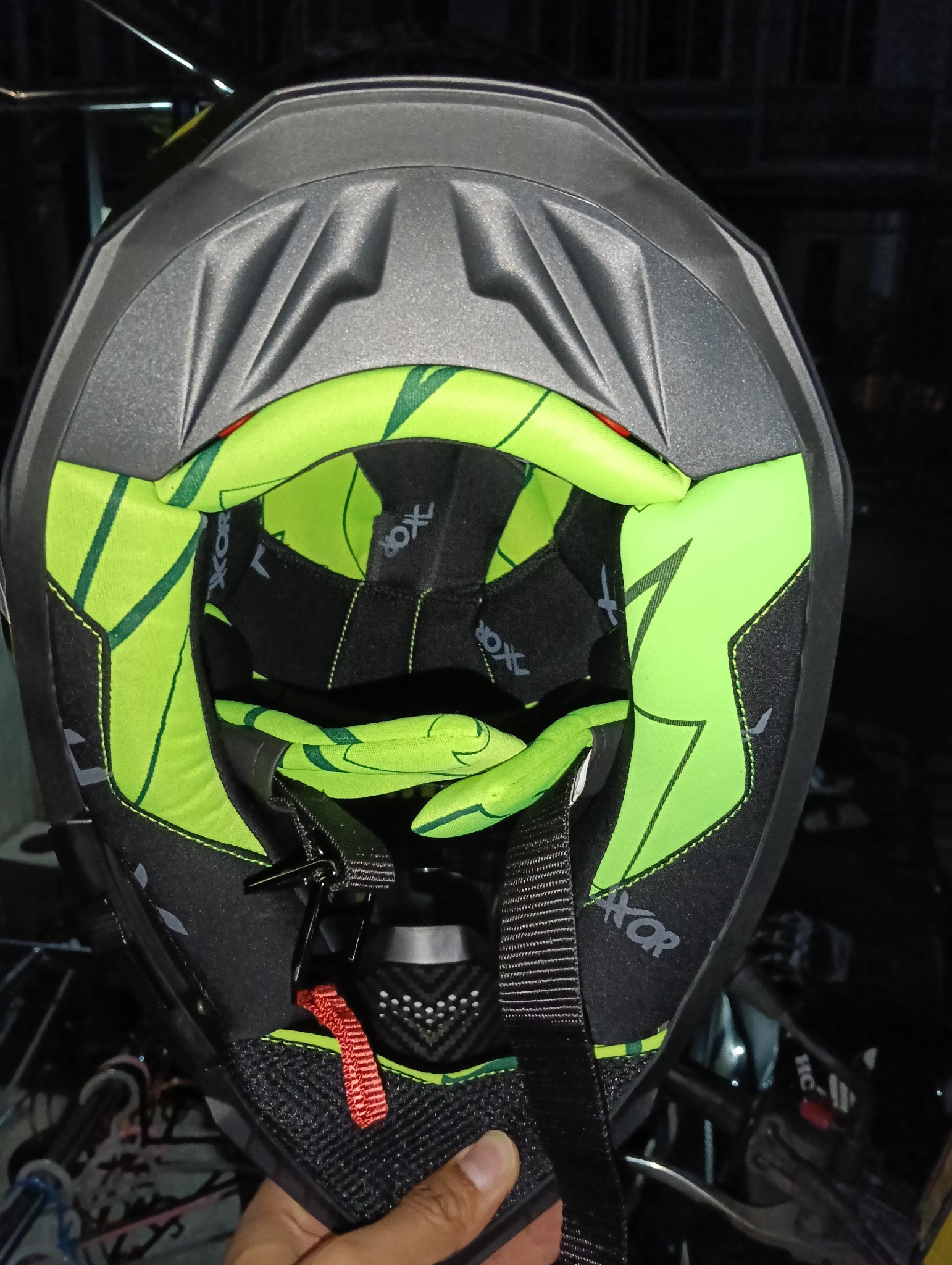 ในส่วนของแว่นกันแดดข้างในอาจจะดูออ่อนกว่าใบเก่า แต่ใส่ขี่ตอนกลางวัน แล้วก็ดูสบายตาดี ไม่รู่สึกแสบตาแต่อย่างใด อาจจะได้กันแดดปลายพีคที่ช่วยด้วยอีกตัว ส่วนตัวปรับจะอยู่ขอบฐานเปลือกหมวกฝั่งซ้ายล่าง คนละจุดกับใบเก่า นวมด้านในใส่ m. แบบใบเก่ากระชับดีเลย ลองทั้ง s และ m ใส่ได้ทั้งคู่ แต่ s จะแน่นเพิ่มขึ้นมา (ผมขี่รถไม่ใส่โม่ง) ส่วนแป้กล้อก dd ring เป็นดุมแม่เหล็กดูด