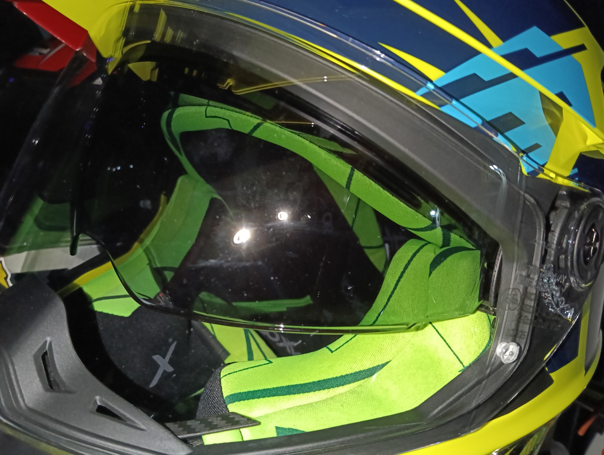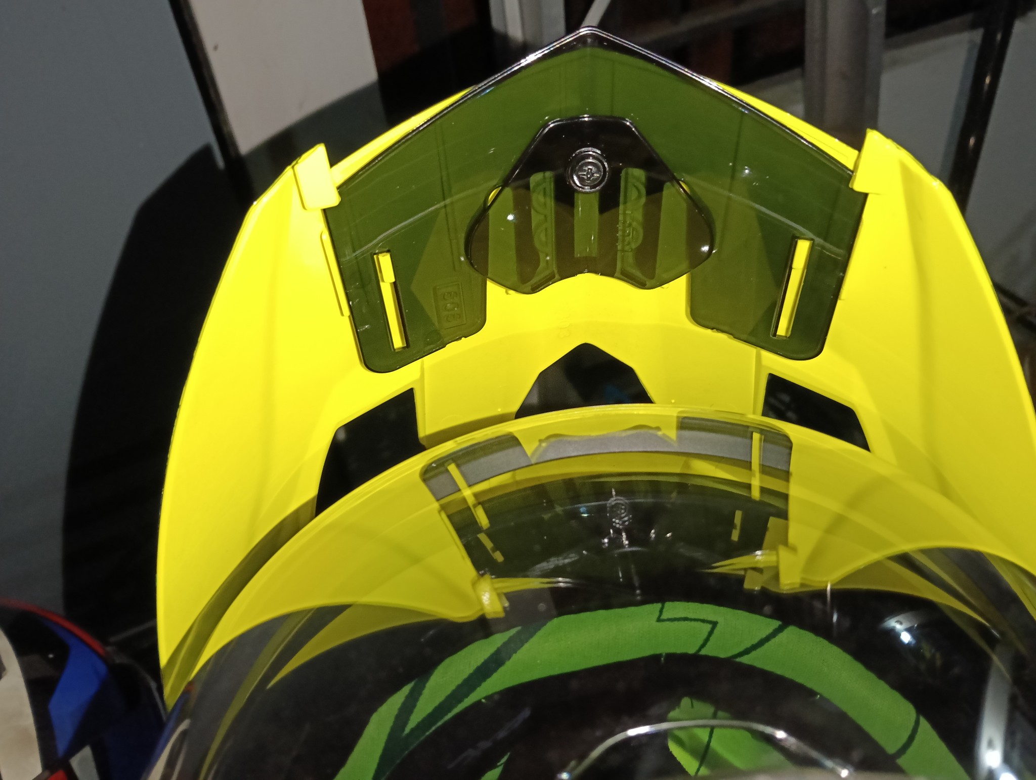 ส่วนรายละเอียด ชิวนอกใส พร้อมมีแว่นกันแดดข้างใน แถมตรงพีคกันแดดปรับระดับได้ตามที่เราชอบ และส่วนปลายของพีคนั้น มีกระจกปลายพีคสำหรับบังแสงแดด ปรับยืดหดเข้าออกได้ตามการใช้งาน ใบเก่าชิวนอกปรอท ซึ่งขี่กลางคืนมาสักพักมองทางยากมากๆ จนต้องสั่งชิวใสเพิ่มมาเปลี่ยน แต่รุ่นปัจจุบันเค้าใส่ชิวนอกใสมาให้แล้ว