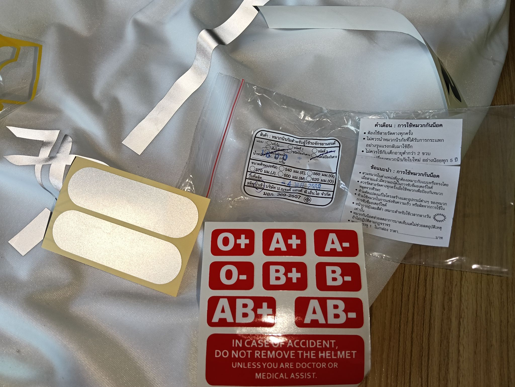 มาตรฐานของหมวก และของแถมในกล่อง กระเป๋า สติ้กเกอร์กรุ๊ปเลือด