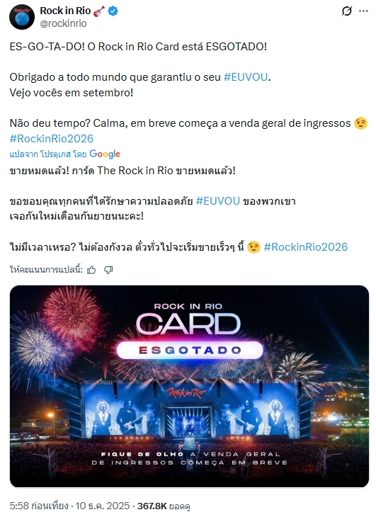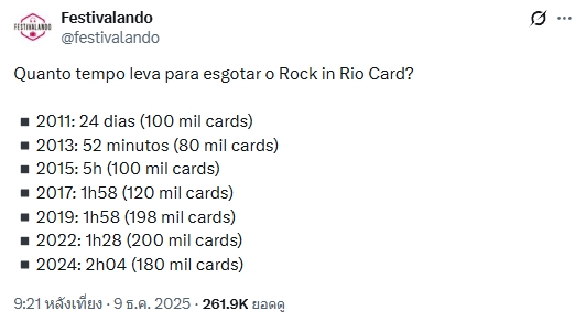 ใช้เวลานานแค่ไหนกว่าจะขายบัตร Rock in Rio Card หมดเกลี้ยง?