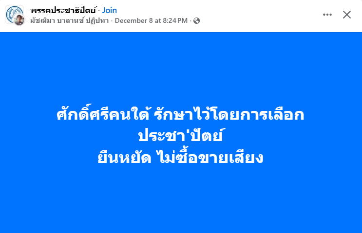 ศักดิ์ศรีคนใต้ รักษาไว้โดยการเลือก ประชา'ปัตย์ ยืนหยัด ไม่ซื้อขายเสียง