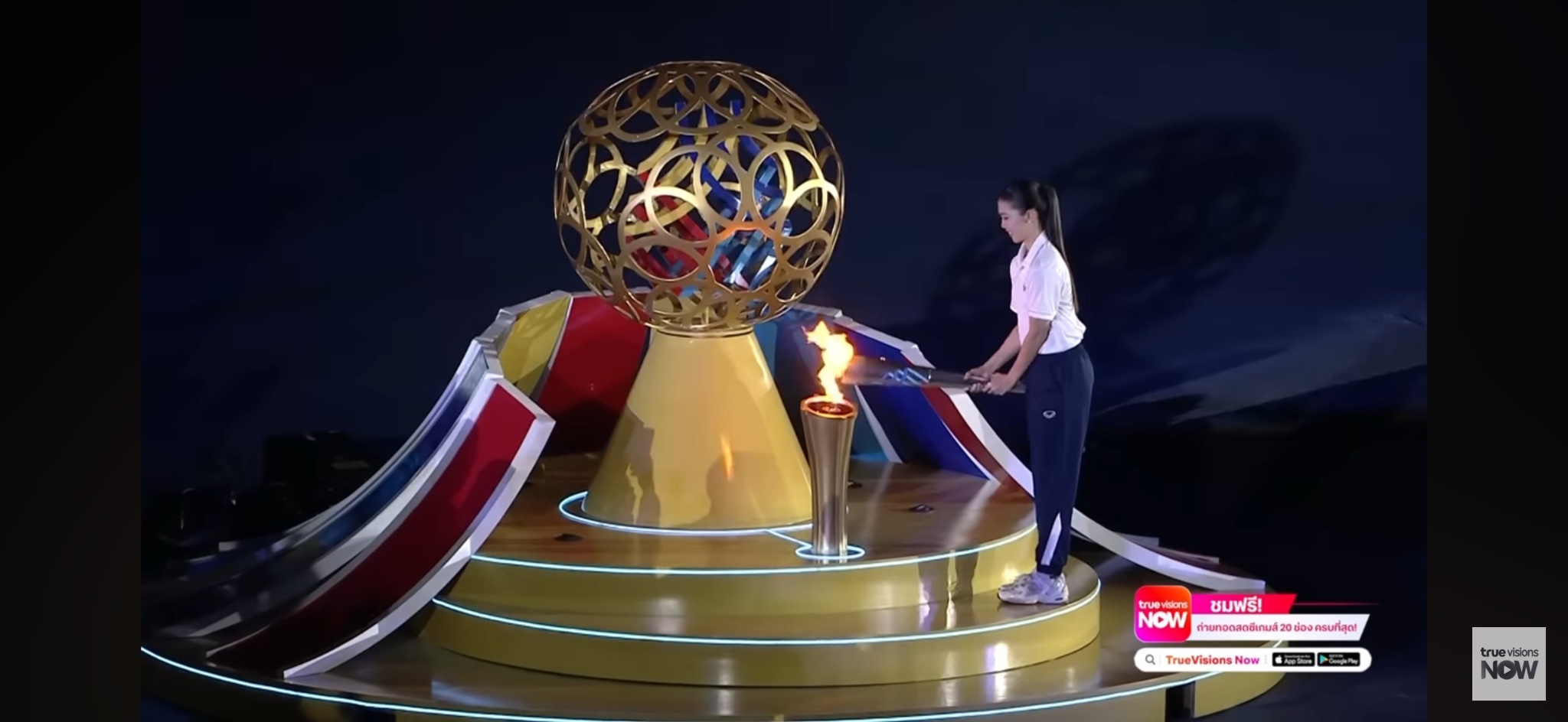 1) น้องเทนนิสวิ่งมาจุดคบเพลิง แบบง่าย ๆ จุดแล้วเสร็จเลยใช่ไหม (ไม่มีคำอธิบายขึ้น)