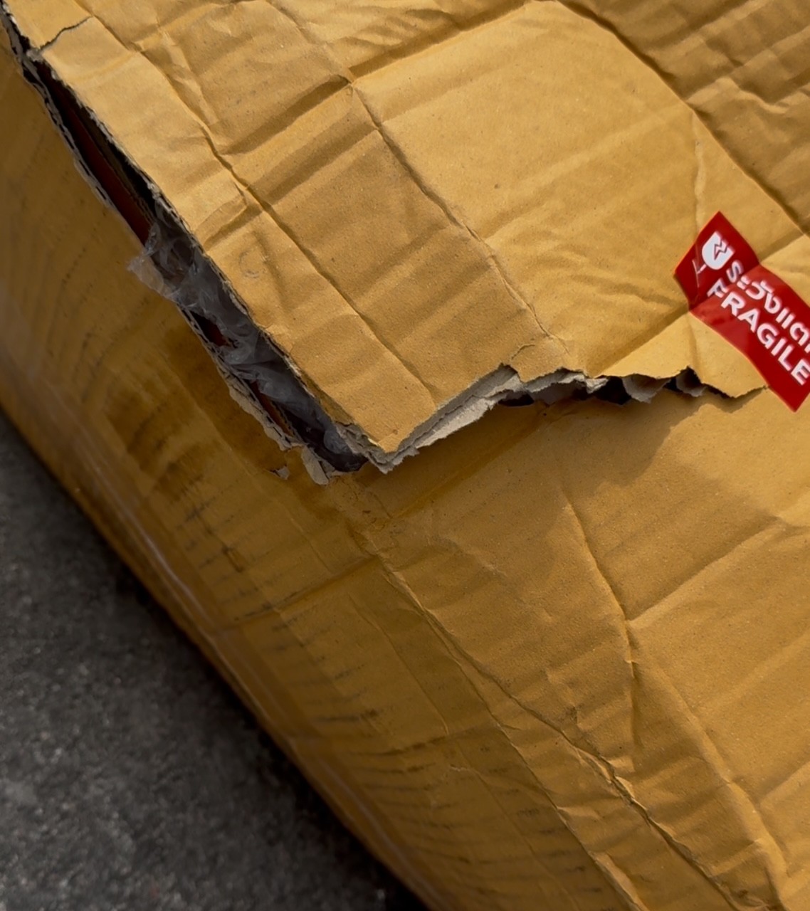 วันนี้ที่กำลังลงอยู่คงไม่รอด ขอเปิดเลยนะ เปิดออกมา ก็แตก เหมือนวันแรก เลยบอกตอนแรกแล้วว่าถ้าแตกไม่รับของตามที่คนแรกบอก แต่คนที่2 บอกว่า ให้ถ่ายวีดีโอเอาไว้ แล้วส่งเคลมกับ สำนักงานใหญ่ สรุปคนแรกกับคนที่2 พูดไม่เหมือนกัน งงตรงที่ทำไมของต้องมา2วัน และ คนส่ง มาคนละคน และคน2 ไม่รับกลับไปเลย และบอกว่าให้เคลมวิธีที่เขาบอกดีกว่า ซึ่งนั่นก็หมายถึงถ้าผมรับของก็เป็นการว่าเขาปิดงานแล้ว การตีกลับไม่เกิดขึ้นแน่นอน
