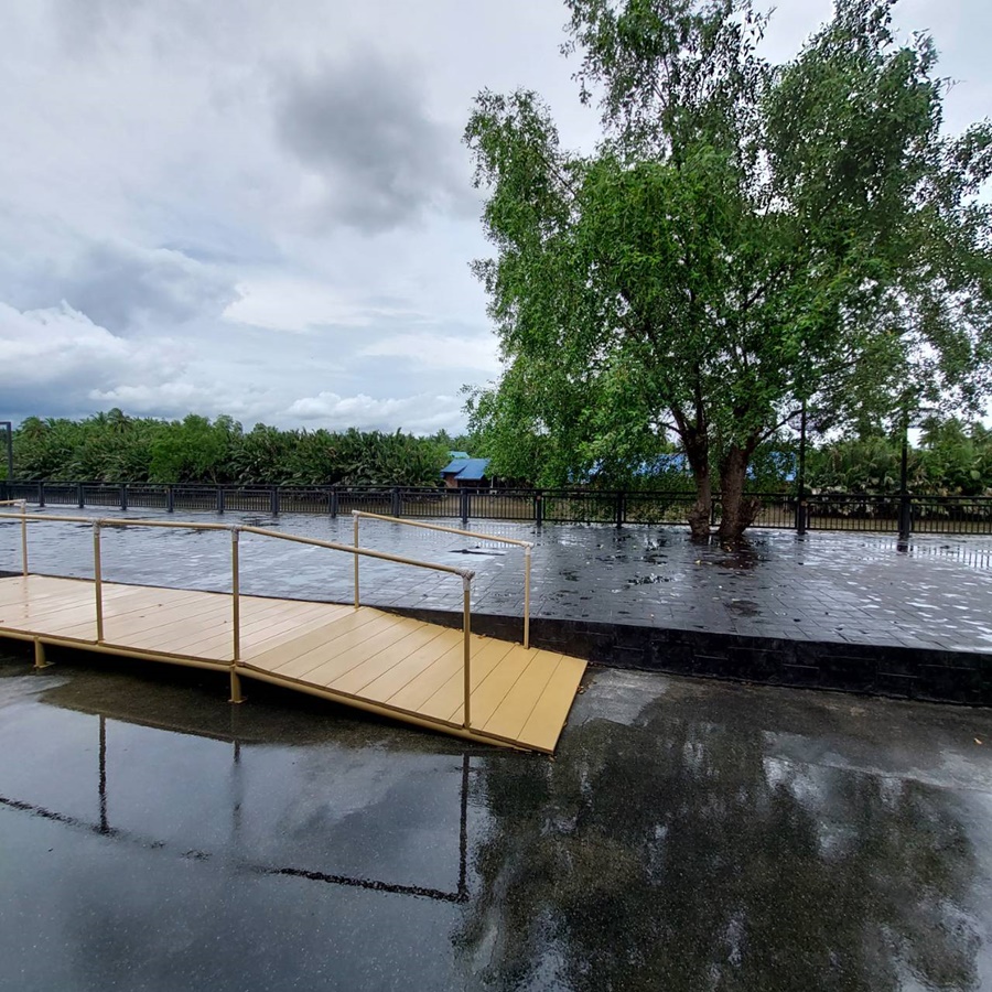 ทางเดินริมน้ำ มีเก้าอี้ไว้นั่งเล่นรับลมชิลๆ