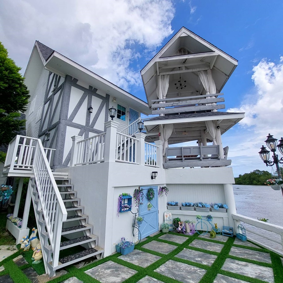 หลังนี้น่าจะเป็นแบบครอบครัว มีระเบียงชมวิวริมน้ำด้วย