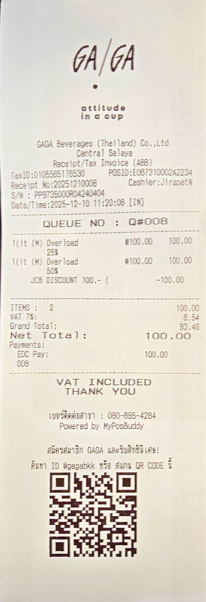โปรโมชั่น: ซื้อเครื่องดื่ม GAGA 1 แก้ว (ขั้นต่ำ 100 บาท) รับฟรีทันที! Gaga Overload Size M หรือ Gaga Milk Tea Rock Salt Mousse Size M (มูลค่า 100 บาท)