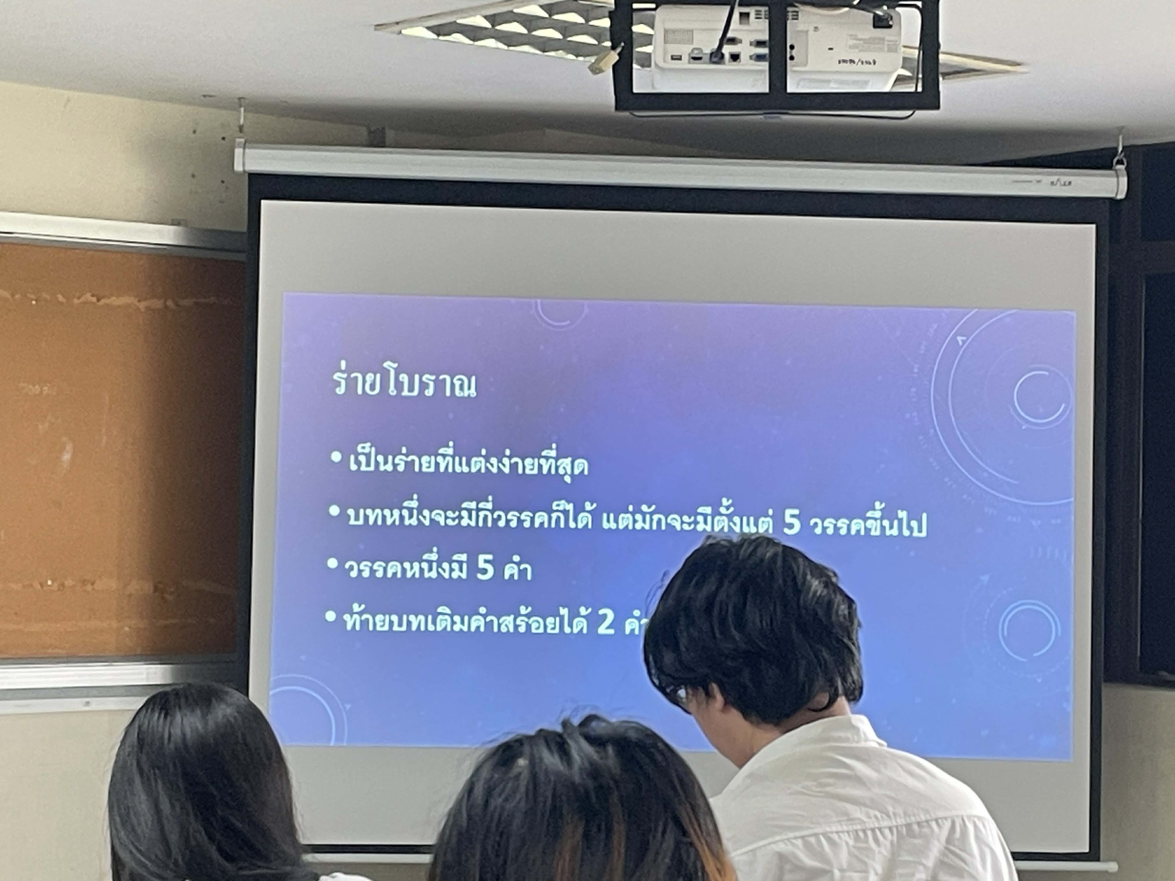 @ ลองเขียน อยากศึกษา....เดินเข้ามา เรียงถ้อย ค่อยค่อยร้อย ร่ายขยับ.........รับต่อใน เนื้อหา ร่ายนั่นหนา ทุกวรรค...........จักห้า ถึงเจ็ดคำ * พึงจำ "รับสัมผัส"...............จัดลง หนึ่ง สอง ส