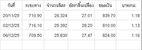 เฉลี่ย ต่ำกว่า 1.20 บาท/กม.