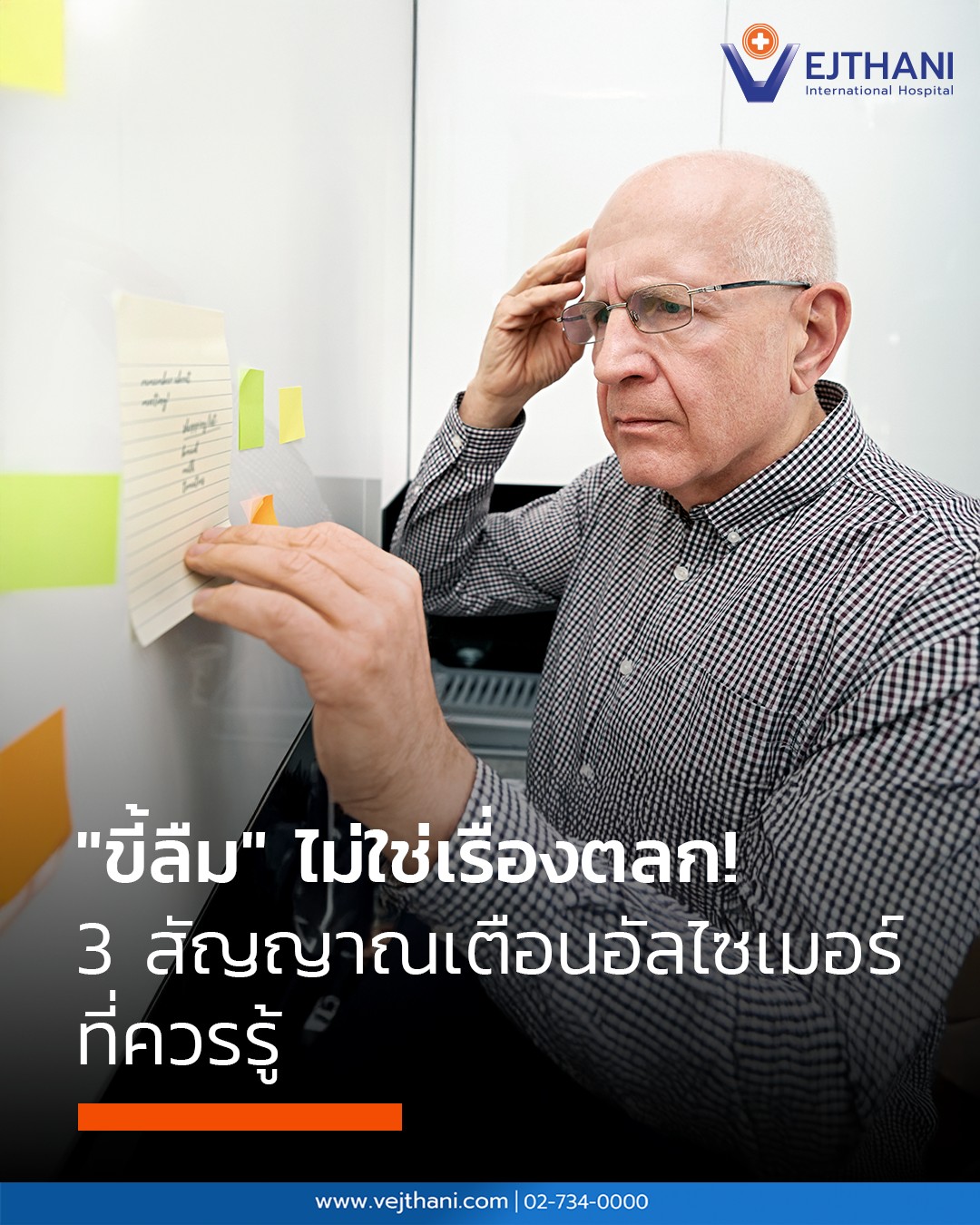 “ขี้ลืมตามวัย” แต่เป็นโรคที่สมองเกิดความเสียหายและการทำงานของเซลล์ประสาทถูกรบกวนจากโปรตีนที่สะสมผิดปกติ ซึ่งส่งผลต่อการใช้ชีวิตประจำวัน เพราะฉะนั้นก่อนที่ความทรงจำจะค่อย ๆ เลือนหาย แนะนำตรวจอัลไซเมอร์ตั้งแต่เริ่มสงสัย เพื่อเริ่มการฝึกสมองและพิจารณายาชะลออาการเสื่อมได้ทันเวลา