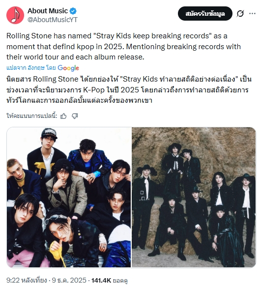 🔥 Rolling Stone ได้ยกย่องให้ "Stray Kids ทำลายสถิติไม่หยุด" เป็นช่วงเวลาสำคัญที่กำหนดวงการ K-pop ในปี 2025 ซึ่งเป็นการเฉลิมฉลองให้กับความสำเร็จในการทำลายสถิติระหว่างทัวร์โลกและการออกอัลบั้มแต่ละครั้ง