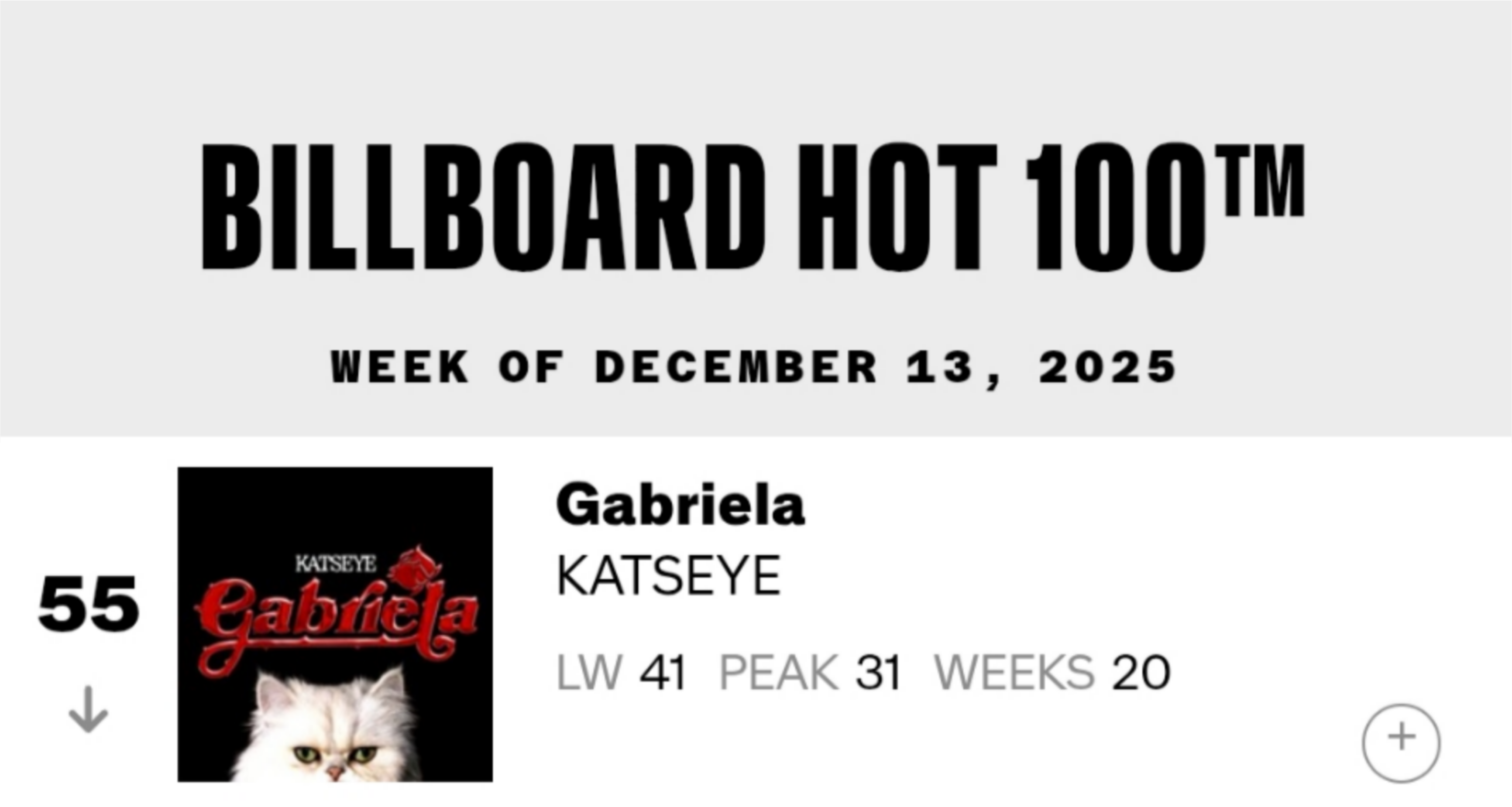 KATSEYE "Gabriela" อยู่อันดับที่ #55 บนชาร์ต Billboard HOT 100 [สัปดาห์ที่ 20]