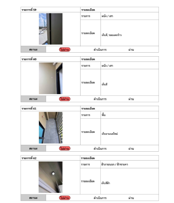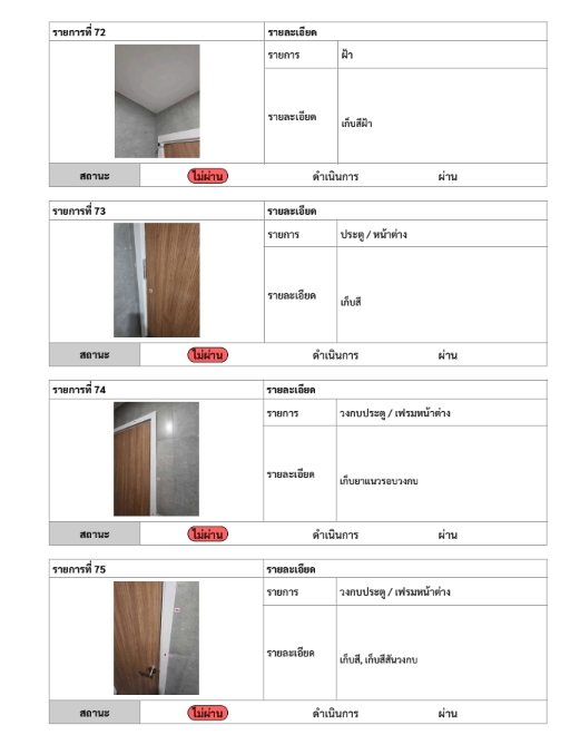 ทางคอนโดได้เรียกให้เข้าตรวจห้อง หลังจากให้ทางบริษัทจ้างตรวจเข้าตรวจเพื่อทำรายงานให้ทางโครการแก้ไข คุณเอ็มเข้าตรวจความเรียบร้อยเเละพบปัญหายังแก้ไขไม่จบตามที่แจ้งไปในรอบแรก จากทั้งหมด 185 ข้อ เริ่มจาก