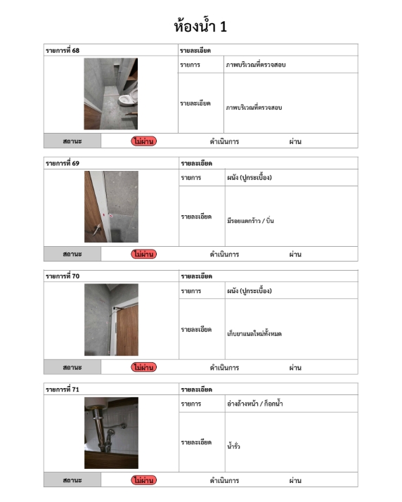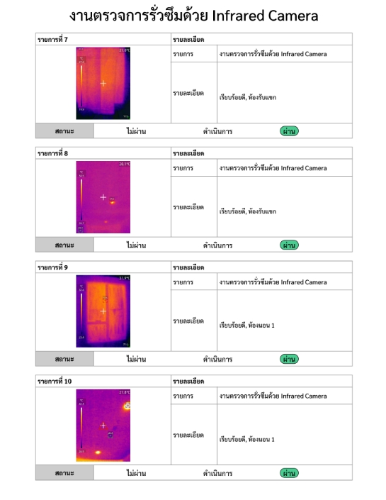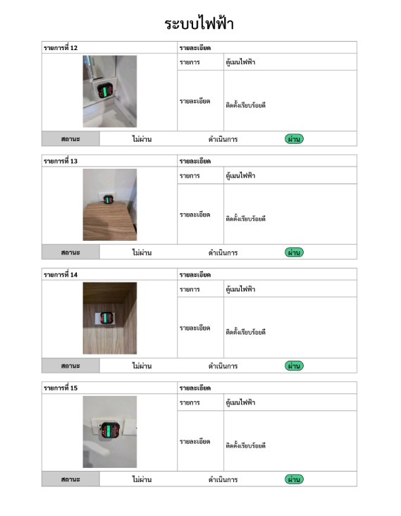 ส่วนงานระบบก็ตรวจครบทั้งน้ำและไฟ ตั้งแต่สวิตช์ เต้ารับ ไปจนถึงจุดที่อาจมีโอกาสเกิดรอยรั่ว หลังตรวจเสร็จทีมงานถ่ายรูปเก็บข้อมูลทุกจุด และสรุปรายการส่งให้ในวันถัดมา ทำให้เห็นปัญหาทั้งหมดได้ชัดเจนและเป็นขั้นตอนดีค่ะ