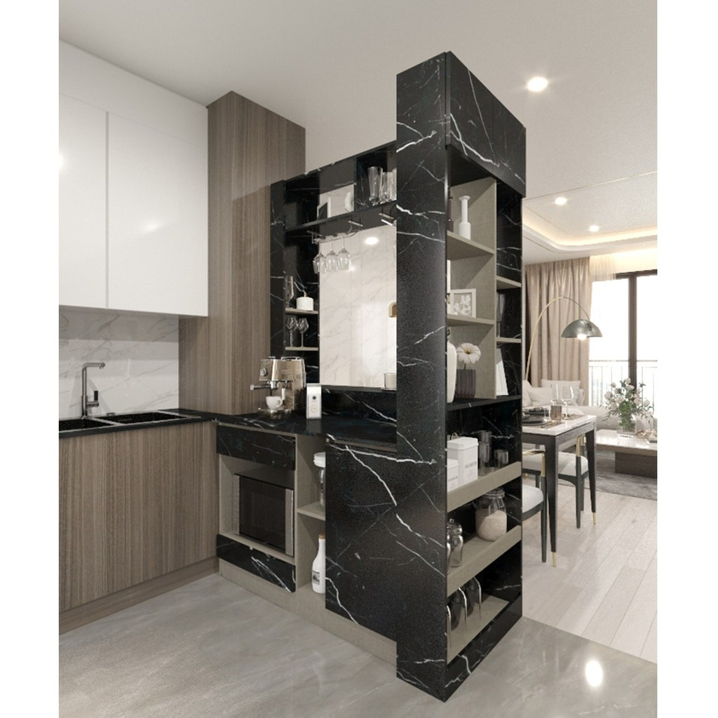 ใครมองหาเคาน์เตอร์บาร์แบบจบในตัวเดียว ทั้งสวยและจัดเก็บของได้เยอะ รุ่นนี้น่าจับตา เพราะ เคาน์เตอร์บาร์ รุ่น Lana สีดำลายหิน จาก KUCHE ดีไซน์สไตล์ Modern Luxury ขนาด 140x70x220 ซม. โทนสีเข้มลายหินอ่อนสีดำช่วยยกระดับบรรยากาศมุมครัวหรือมุมทานข้าวให้ดูหรูขึ้นทันที มีทั้งตู้เก็บของ ชั้นวางของด้านข้าง ช่องวางไมโครเวฟ และราวแขวนแก้วไวน์ให้จัดเซตเครื่องดื่มได้ครบในจุดเดียว 🍷