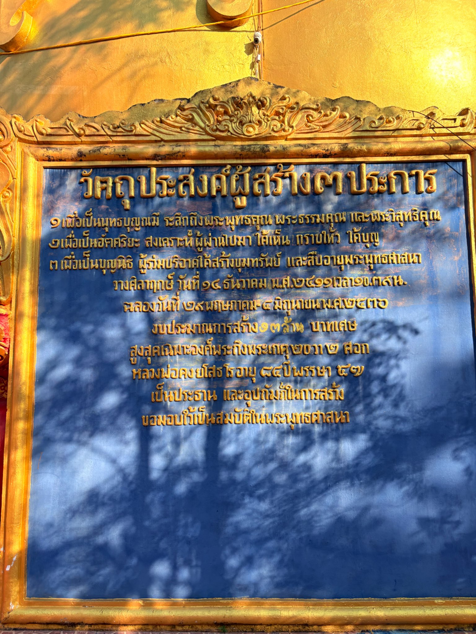 ฐานองค์พระมีจารึกจากคณะผู้ริเริ่มสร้าง ถ้อยคำที่ประกาศว่า ปณิธานคือเพื่อเป็นบุญนิธิแก่พุทธศาสนิกชนทั่วไป อ่านแล้วยิ่งเลื่อมใสเป็นทวีคูณ.