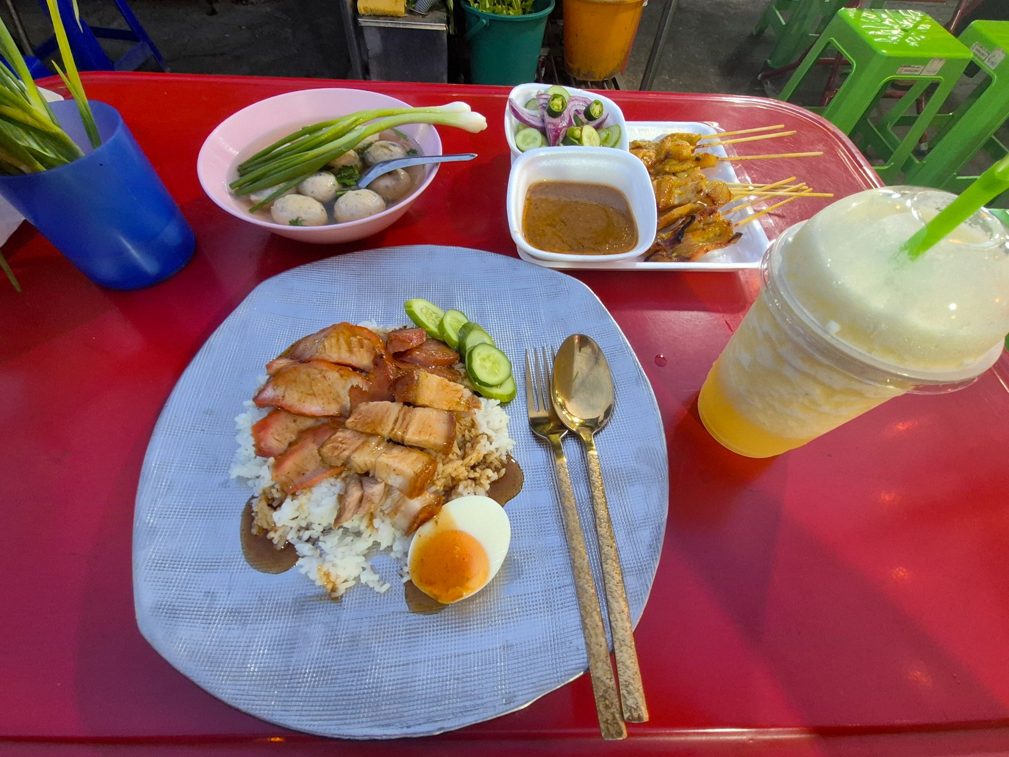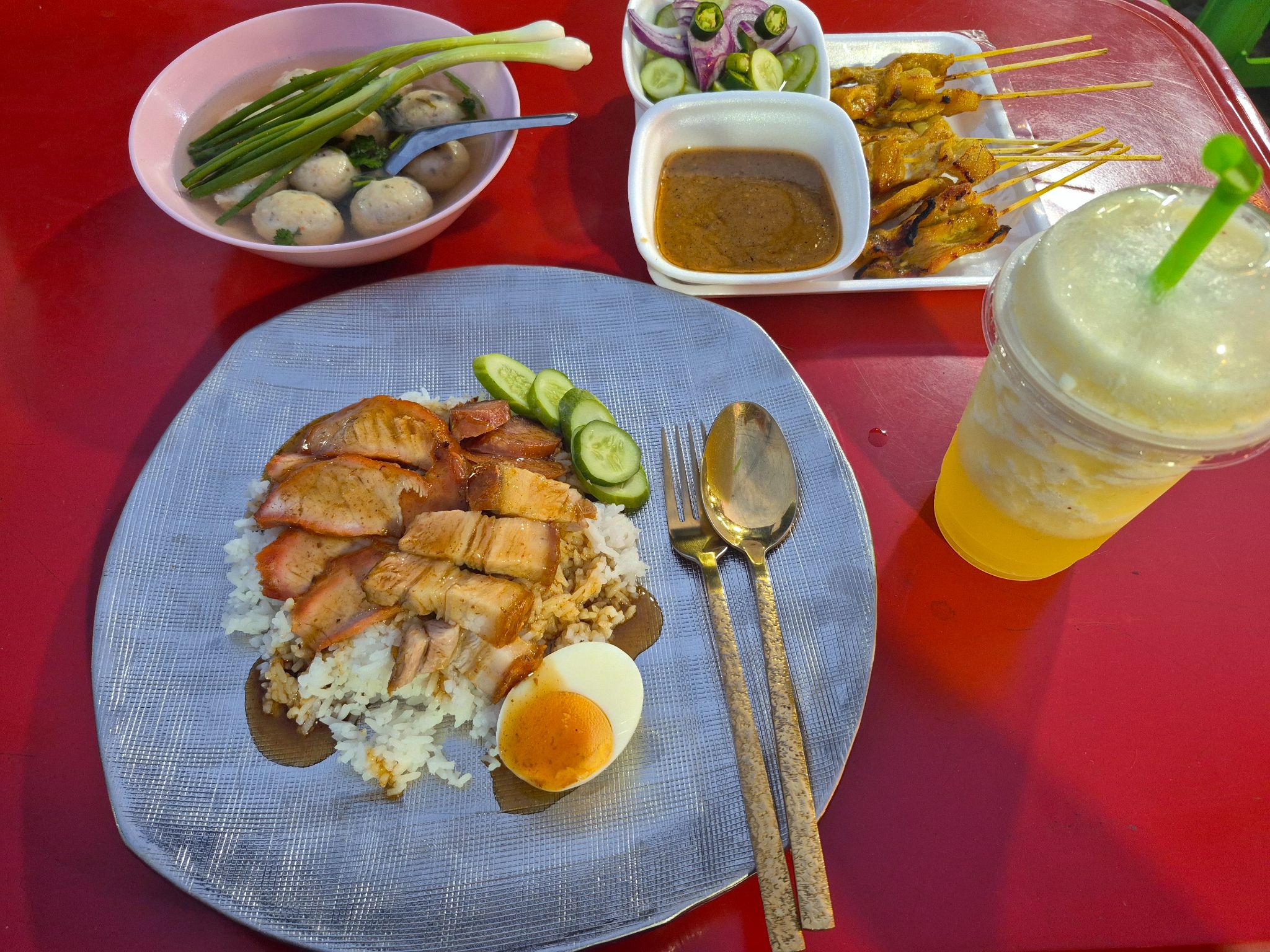 เช้าได้ปาท่องโก๋ทานกับกาแฟ กลางวันได้ข้าวหมูแดงหมูกรอบจ่ายคนละครึ่งเหลือ 25 บาท อิ่มๆ เย็นค่อยว่ากันอีกที