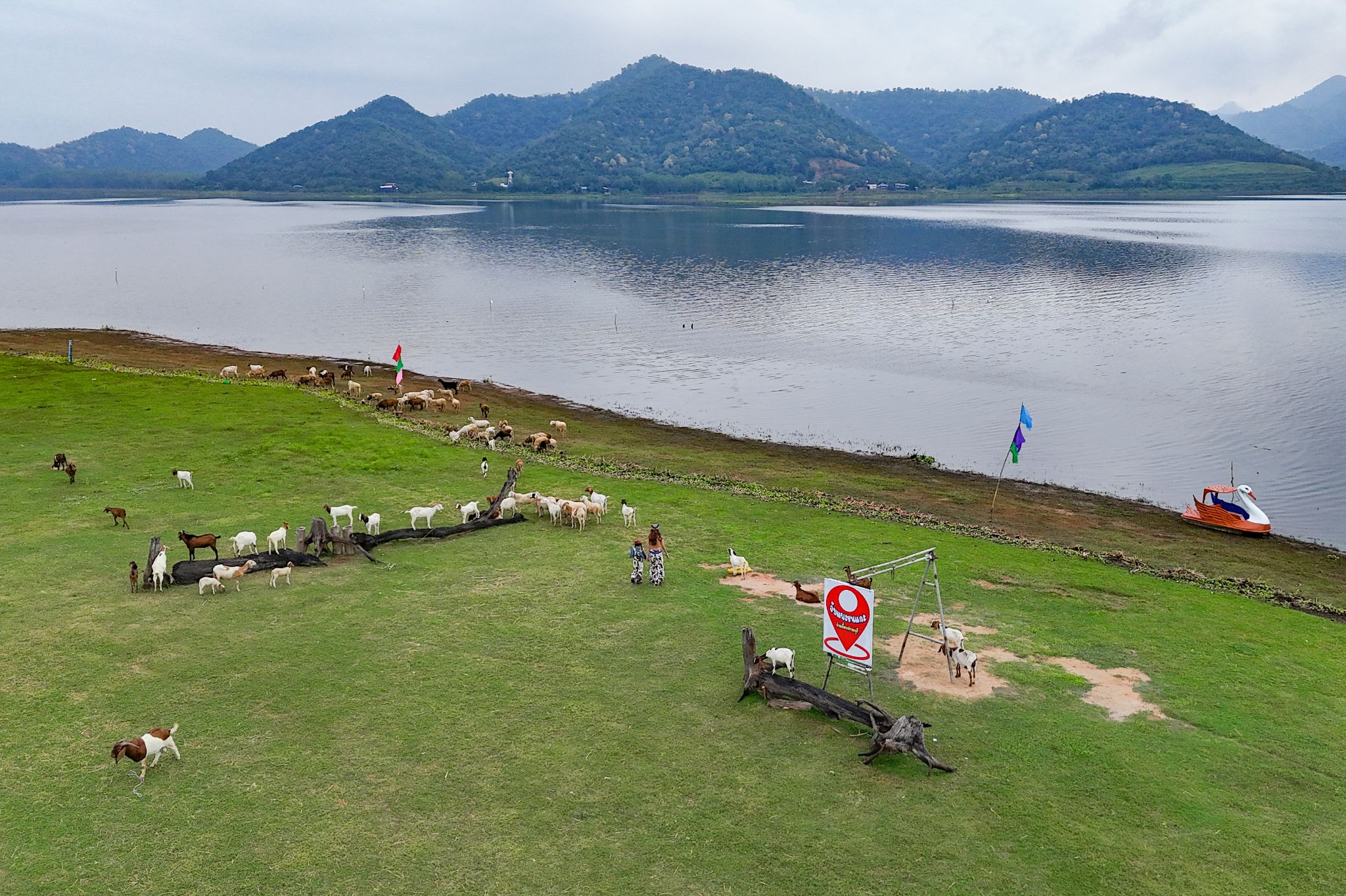 พวกเรามากันที่ "จับแพะชนแกะ" ซึ่งที่นี่จะอยู่ท้ายเขื่อนเลยค่ะ เข้าชมได้โดยไม่เสียค่าเข้า