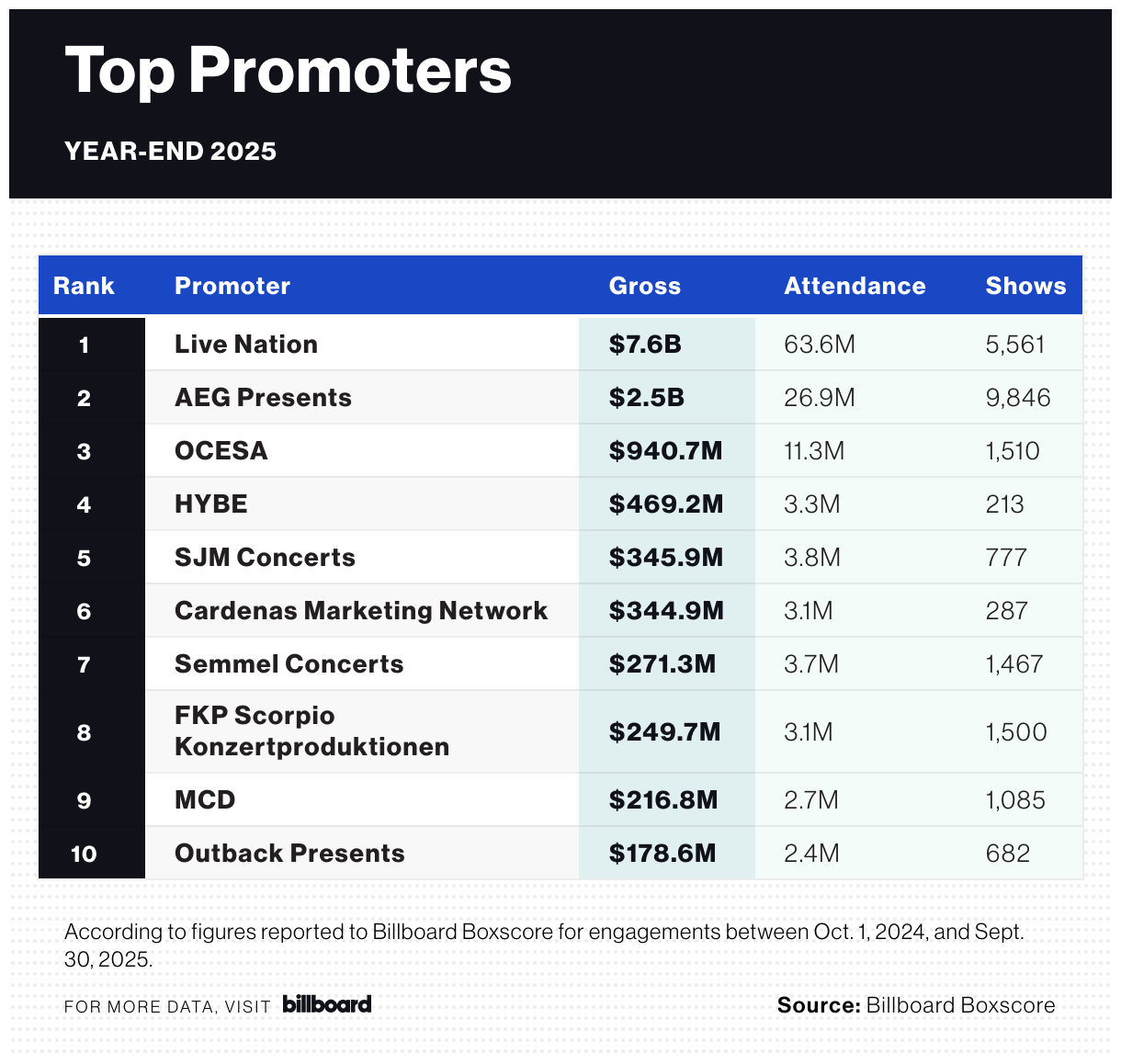 Billboard ได้ประกาศ Top Promoter YEAR-END 2025 ออกมาแล้ว