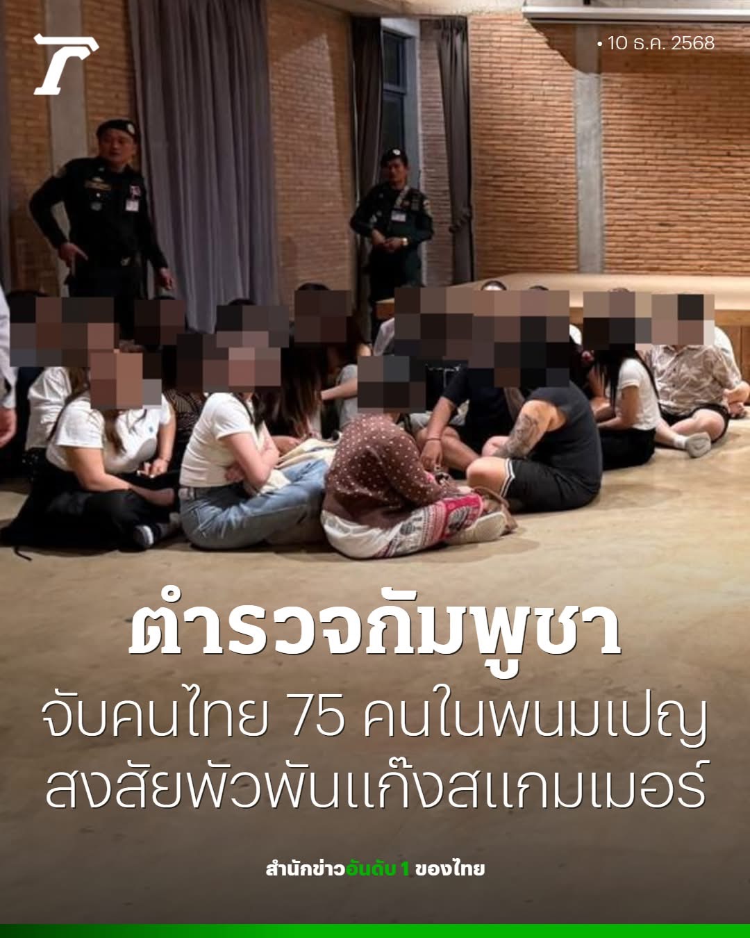 กัมพูชาจับกุมชาวไทย 75 คนในพนมเปญ สงสัยพัวพันหลอกลวงออนไลน์
