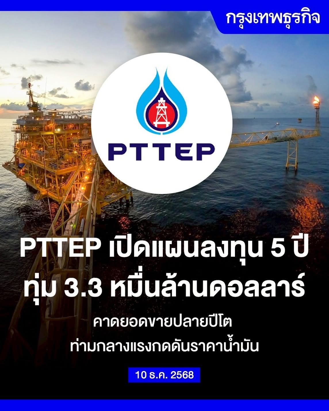 PTTEP เปิดแผนลงทุน 5 ปี ทุ่ม 3.3 หมื่นล้านดอลลาร์ คาดยอดขายปลายปีโต ท่ามกลางแรงกดดันราคาน้ำมัน