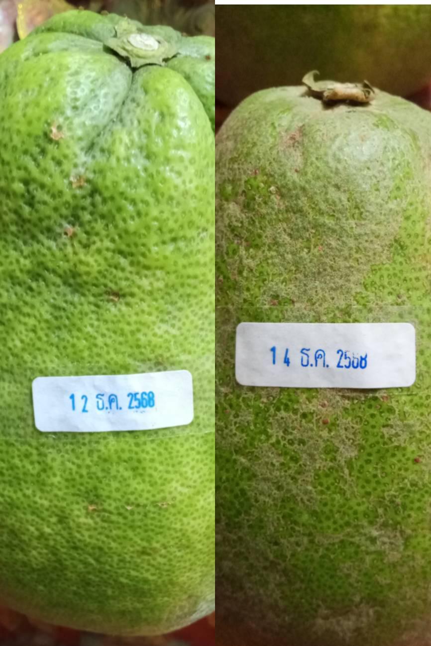 คำถาม2 ที่ว่าเก็บ 12 ไปกินพร้อม 14 ได้ไหม ได้ครับส้มโอลูกที่พ้นพักตัวเก็บกินได้หลายสัปดาห์โดยไม่เสียสบายๆ