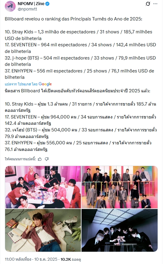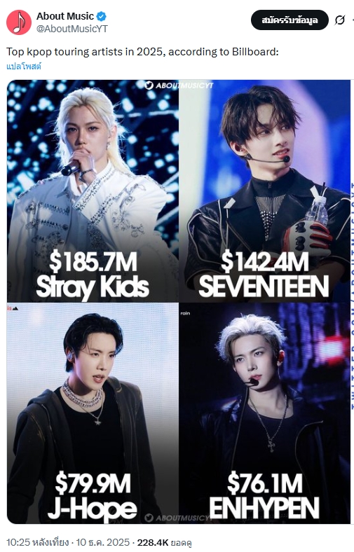 🔥 Stray Kids ทัวร์โลกอันดับ 1 K-Pop บน Billboard's Year-End Top Tours 2025 จากรายงาน 31/49 shows ท้วงติงและรอ JYP แก้ไข
