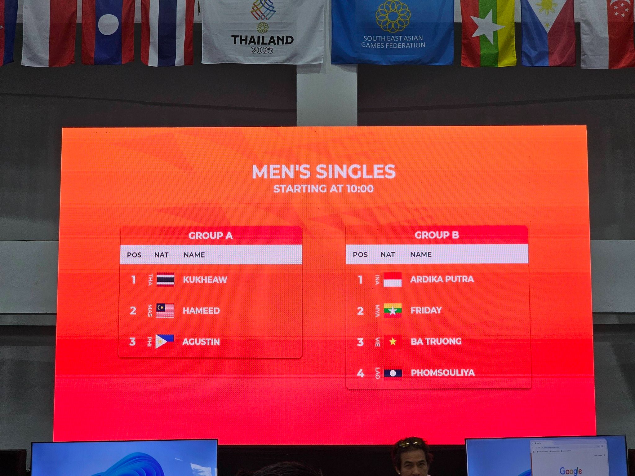 - รอบแบ่งกลุ่ม : แข่งขันประเภทเดี่ยวชาย เดี่ยวหญิง และคู่ผสม