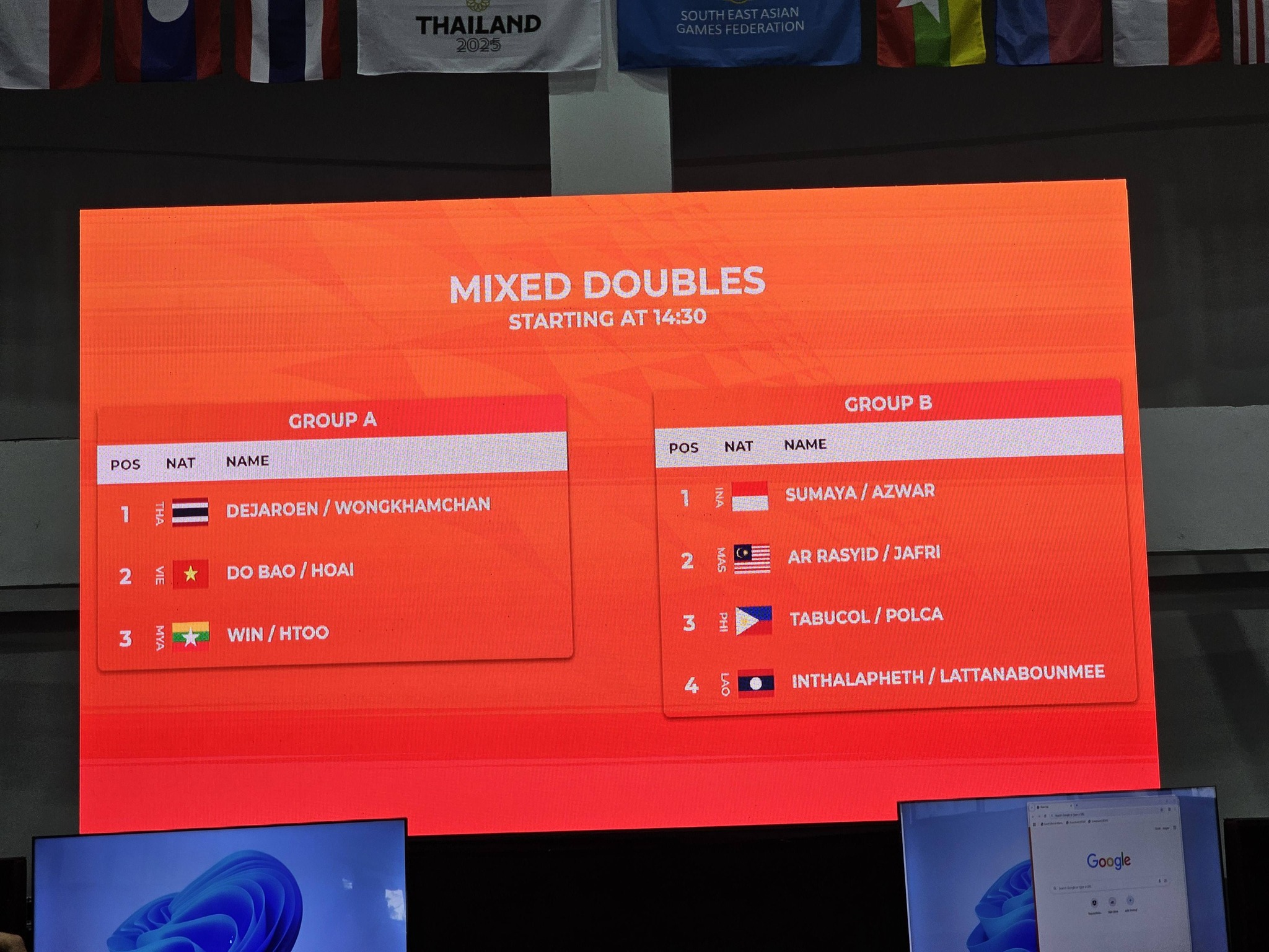 เวลา 15:00 น. โต๊ะ 1 พักตร์พงษ์ เดชเจริญ - สุภาวดี วงศ์คำจันทร์ (ไทย) VS HUY DO BAO - MY THI TRA TRAN (เวียดนาม)