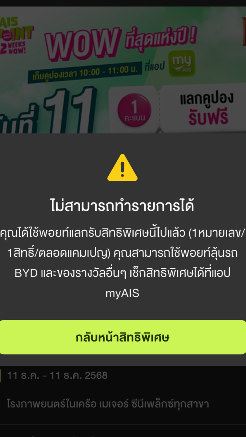 คูปองรับสิทธิ์ แลกคะแนน1พอยต์. คือก่อนหน้านี้เรารับคูปองไปแล้วแต่ยังไม่ใช้ แล้ววันนี้จะกดรับอีกร้านนึงแต่บอกใช้สิทธิ์