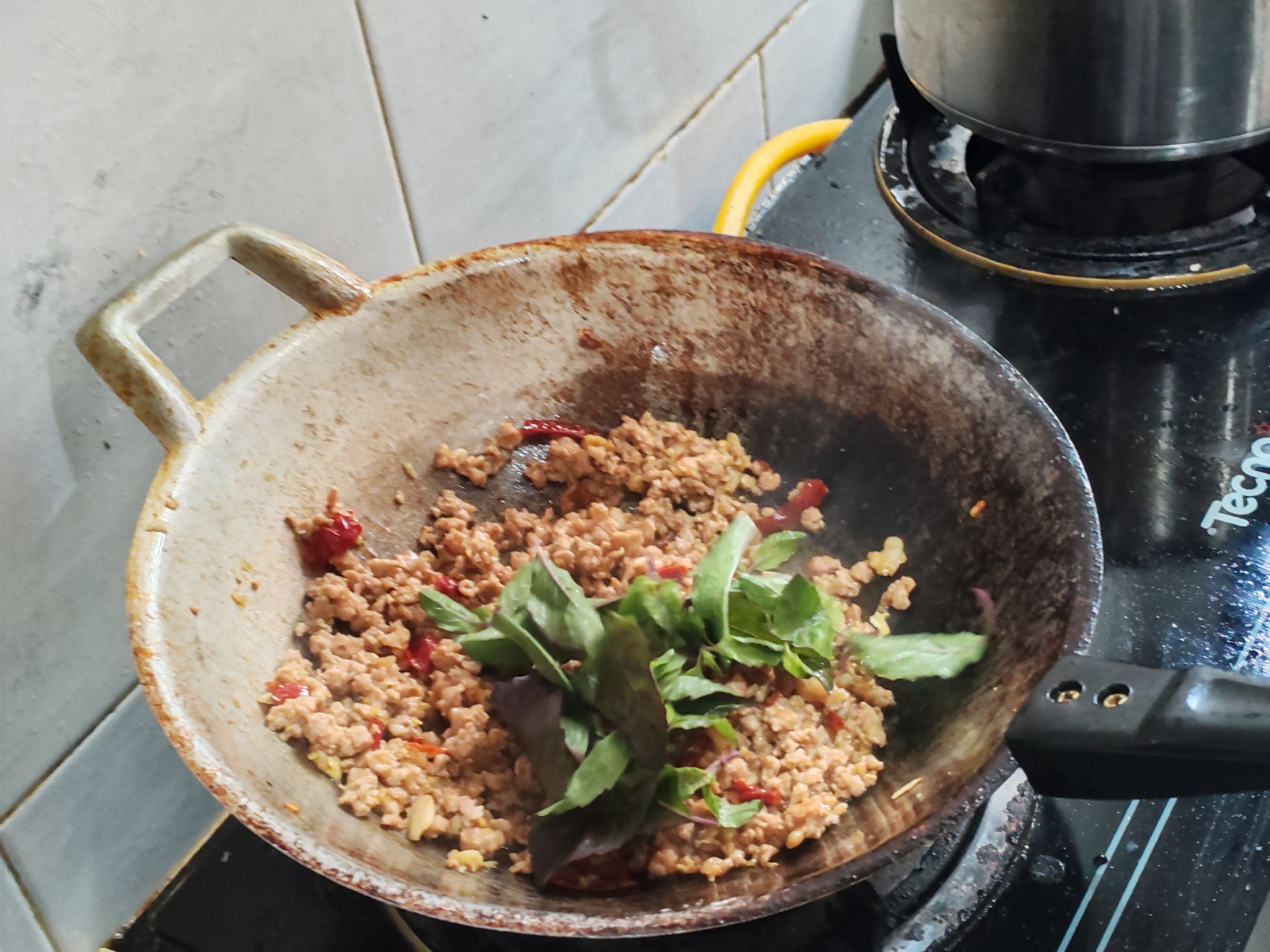 ผัดกาเป๋าขายดีมากครับ อร่อยมาก อันนี้น้องสะใภ้ผัดรอบ 2 ครับ