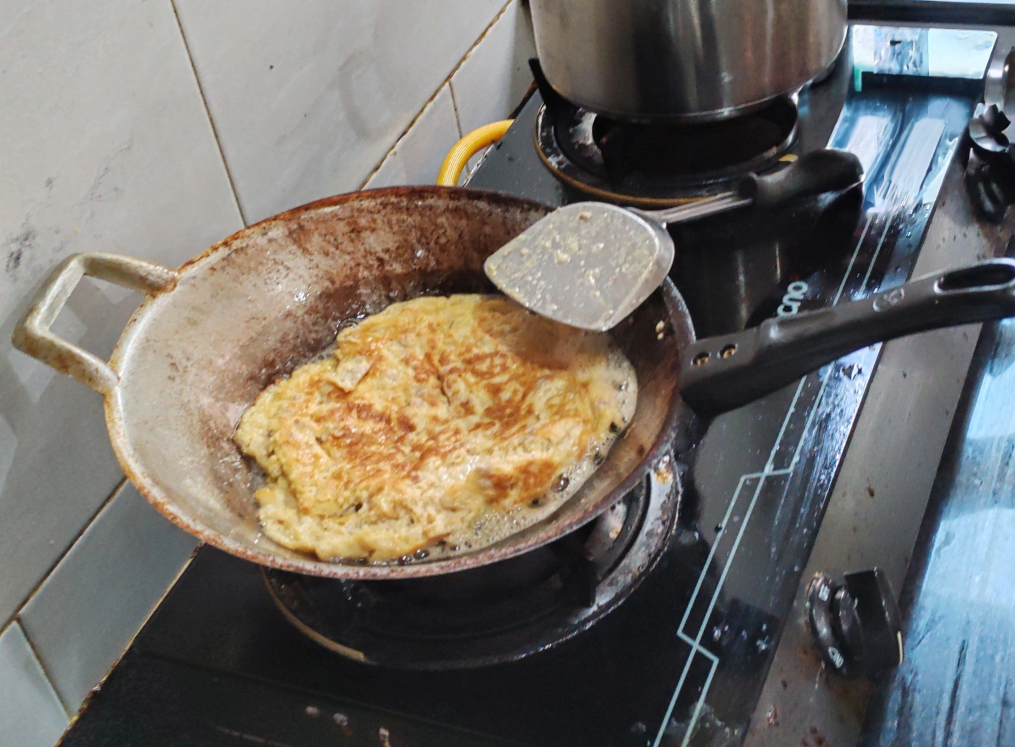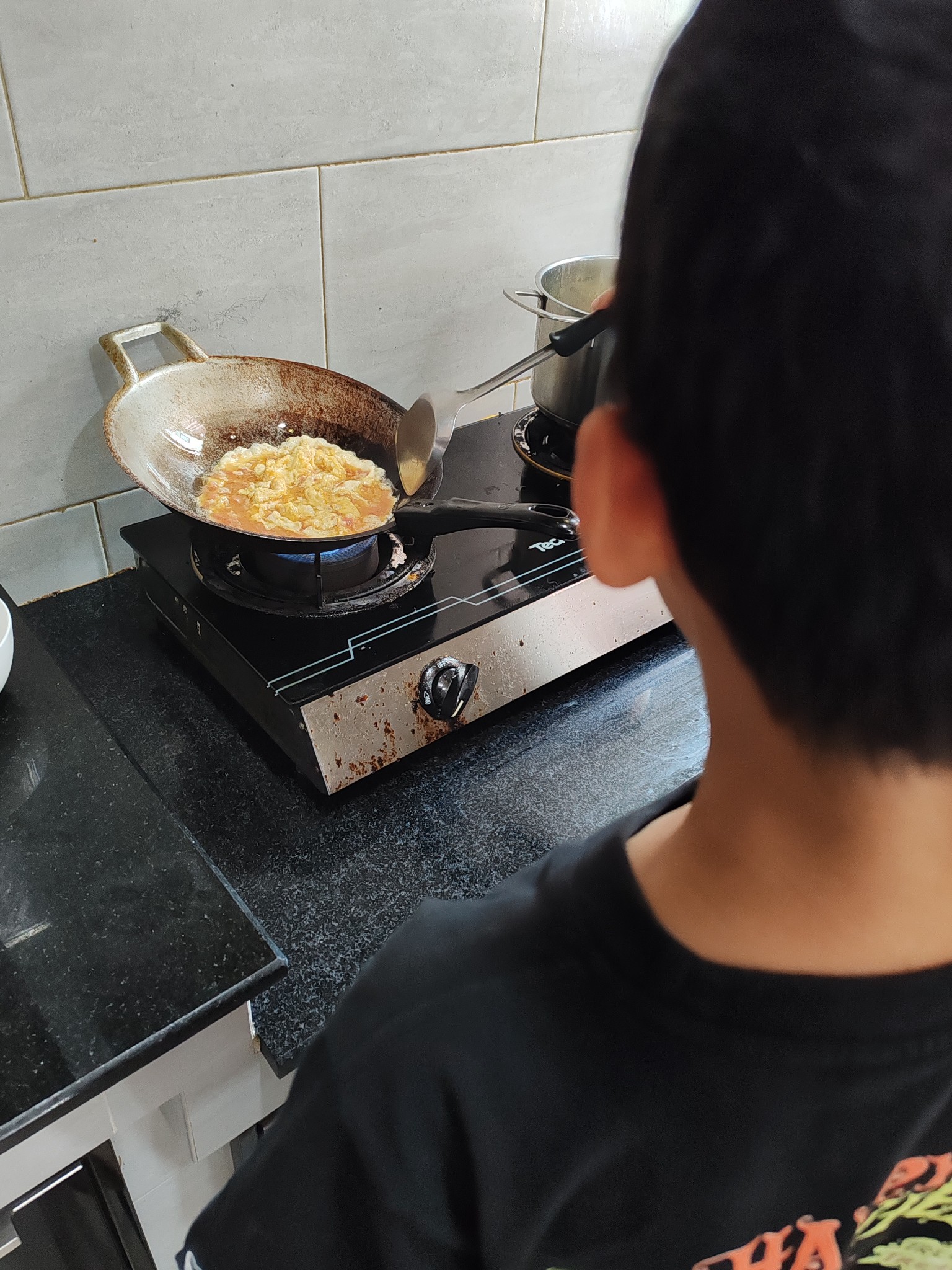 เรื่องของเรื่อง หลานสาวกับหลานชาย มื้อเที่ยงอยากกินข้าวไข่เจียวครับ โอเค จัดไป แต่คงจะหิว เลยบอกจะเข้าครัวมาช่วย
