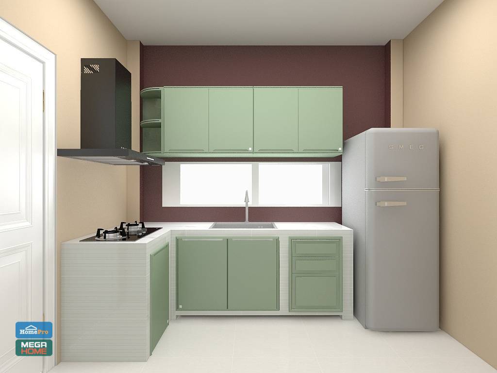 ใจก็อยากได้ครัวปูนแต่ที่บ้านเก่าเคยใช้ครัวปูนแล้วตู้ใต้เคาน์เตอร์มักมีปัญหาความชื้น มีกลิ่นอับชื้นตลอดเวลาทั้งๆ ที่หน้าบานก็เป็นแบบระบายอากาศได้