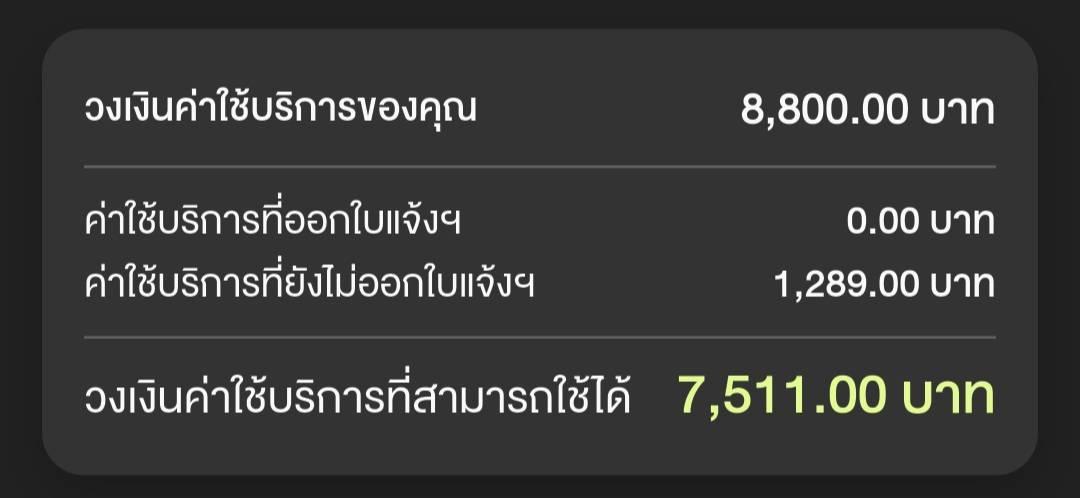ค่าใช้บริการที่ยังไม่ออกใบแจ้ง 1,289 บาท