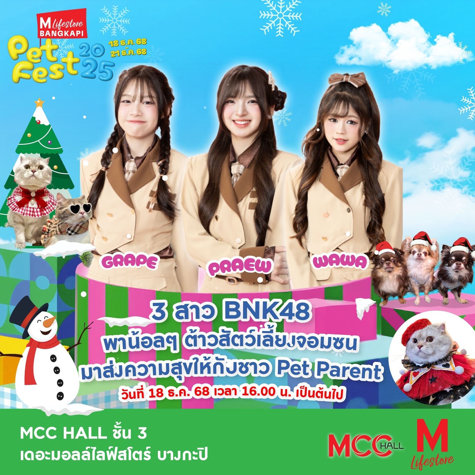 พบกับ "เกรฟ-แพรว-วาว่า" 3 สมาชิก BNK48 ในงาน The Mall Lifestore Bangkapi Pet Fest 2025 วันที่ 18 ธันวาคมนี้