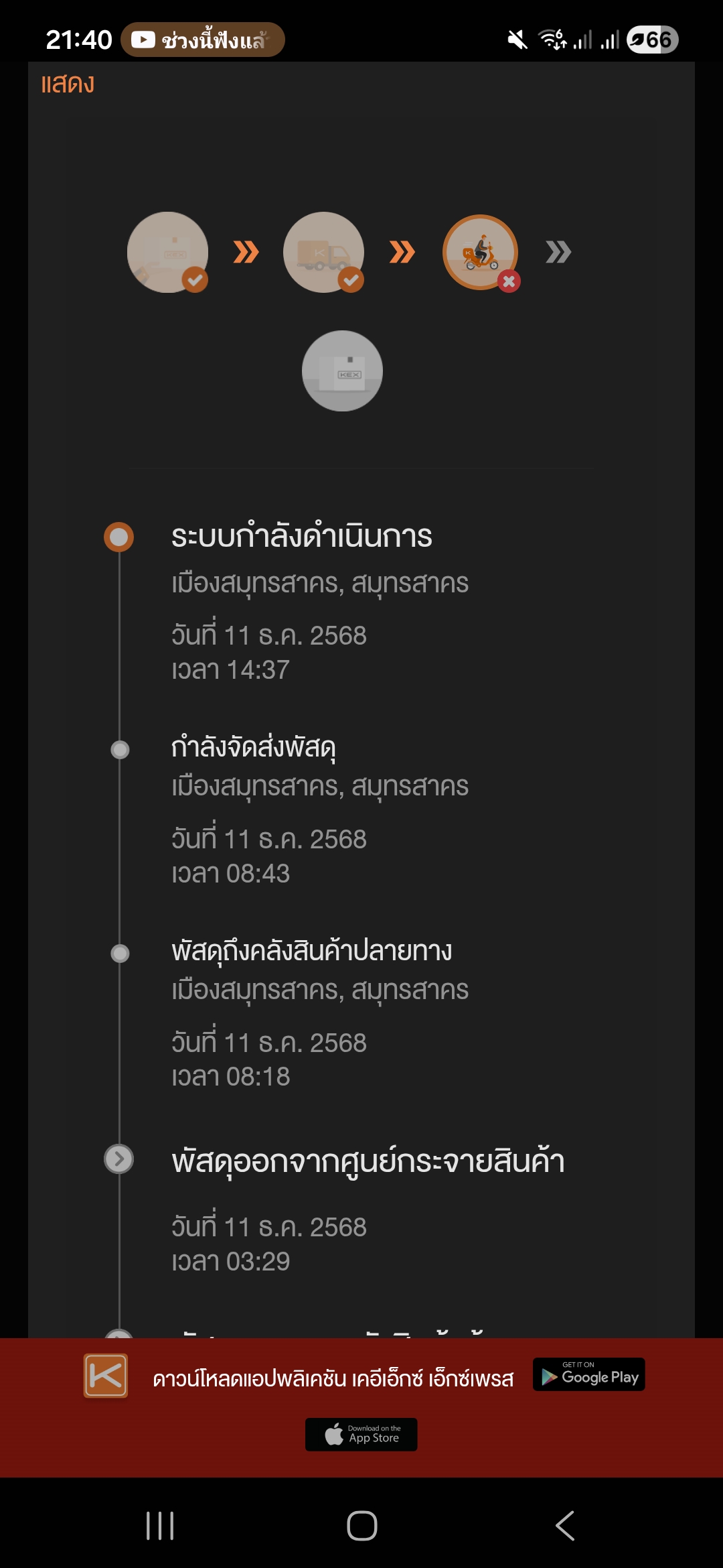 เคอรี่ kex พัสดุไม่มีการอัพเดทสถานะ